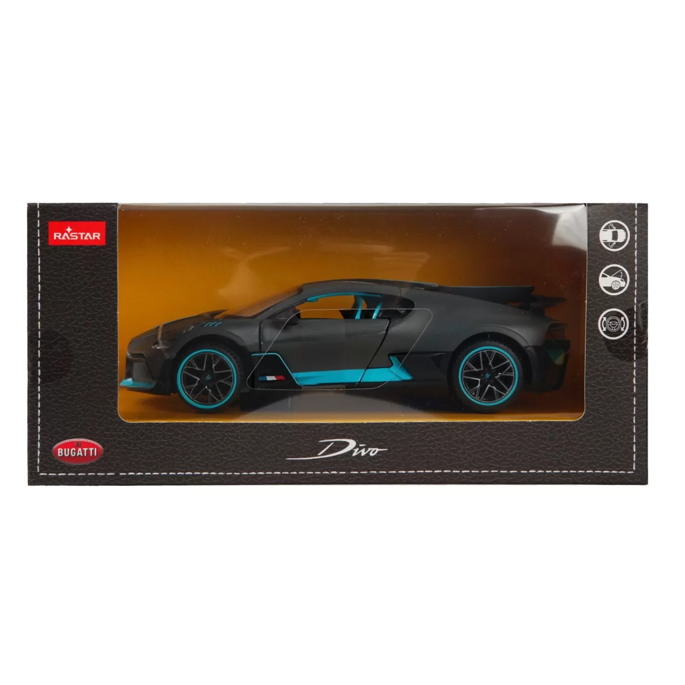 Masinuta are proportiile ideale pentru momente pline de distractie si amuzament, avand dimensiunile in centimetri dupa cum urmeaza 18.8*8.4*5.3. Masinuta metalica Bugatti Divo, scara 1 la 24, are anvelope de cauciuc si un design detaliat interior-exterior realizat din material metalic turnat cu accesorii realizate din material plastic portiere de calitate superioara. Copilul dumneavoastra se poate juca in voie cu masina metalica Bugatti Divo oferita de brandul international Rastar. Nicio cursa nu este imposibil de castigat cu acesta masinuta, care este o replica oficiala cu licenta a modelului original, construita cu mare atentie la detalii. Pasionatii si colectionarii de machete metalice pot de asemenea aprecia aceasta macheta metalica.