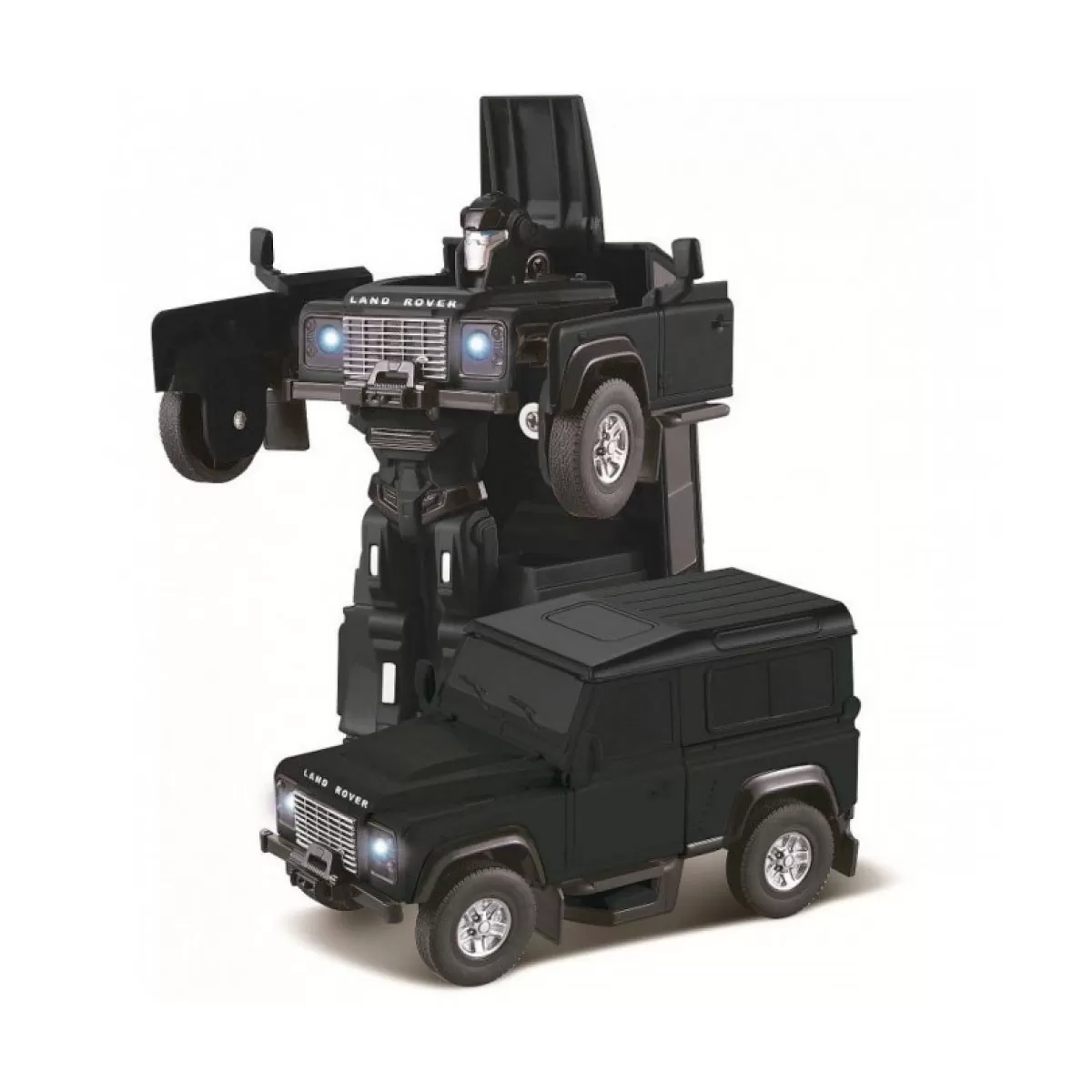 Masinuta Land Rover Defender este gata de a iesi din cutie! Poate fi masinuta sau robot! Efecte luminoase si sunete in timpul miscarii.Masinuta are proportiile ideale pentru momente pline de distractie si amuzament, avand dimensiunile in centimetri dupa cum urmeaza 13.5*9.5*15.5cm. Masinuta metalica Land Rover Defender, scara 1 la 32, are anvelope de cauciuc si un design detaliat interior-exterior realizat din material metalic turnat cu accesorii realizate din material plastic portiere de calitate superioara. Copilul dumneavoastra se poate juca in voie cu masina metalica Land Rover Defender oferita de brandul international Rastar. Nicio cursa nu este imposibil de castigat cu acesta masinuta, care este o replica oficiala cu licenta a modelului original, construita cu mare atentie la detalii. Pasionatii si colectionarii de machete metalice pot de asemenea aprecia aceasta macheta metalica.