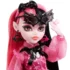 A reinceput scoala, iar papusile Monster High apar intr-un stil grozav! Papusa Draculaura se plimba pe holurile Monster High intr-o tinuta fantezista, cu pantaloni scurti cu imprimeu cu inimioare si un corset cu maneci transparente. Look-ul ei infiorator, inspirat de vampiri, este completat de ciorapi transparenti cu volane, pantofi roz cu platforma, precum si o bentita si ochelari de soare cu detalii de liliac. Duceti look-ul papusii Draculaura la urmatorul nivel cu o pelerina de vampir infricosatoare si accesorii. Si inspira povestiri infioratoare cu liliacul ei de companie, Count Fabulous! Papusa nu poate sta singura.