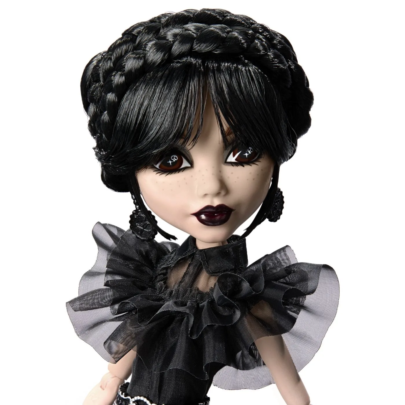 Colectia Monster High x Wednesday aduce un omagiu serialului de televiziune cu spirit intunecat si de-a dreptul straniu printr-o linie de papusi de groaza. Inspirata de rochia de epoca a personajului ei din scena de dans scolar a serialului, aceasta papusa Rave'N Wednesday face goth glam intr-o rochie neagra la miezul noptii. Întunecata ca si simtul ei al umorului, rochia din organza a lui Rave'N Wednesday are straturi transparente care par filate din umbre. O curea statement si cercei Monster High completeaza look-ul ei chic. Este pregatita sa paseasca intr-o noapte de cosmar in pantofii ei boo-spoke! Tocurile lor de gheata si yeti aduc un omagiu temei dansului Rave'N criza climatica intalneste evenimentul extinctiei.