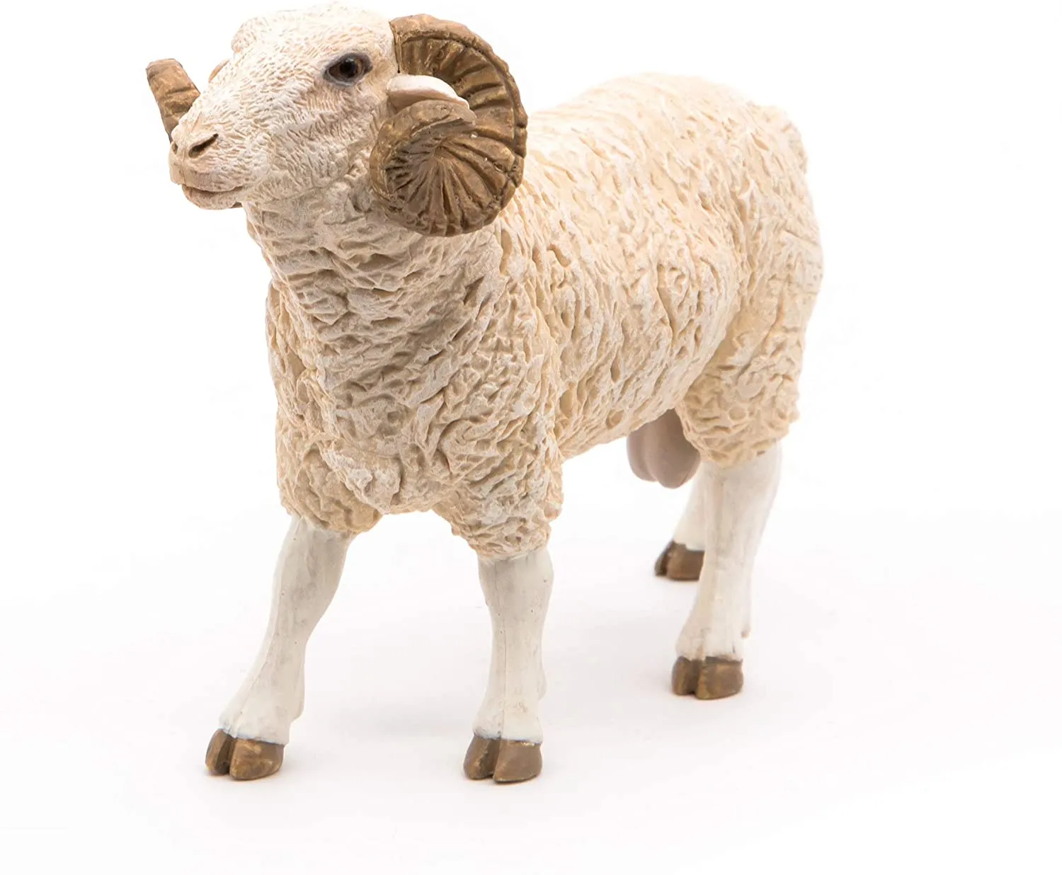 Cu figurinele universului fermei, trezeste-te cu cantatul cocosului, mergi sa hranesti animalele si ridica fructele si legumele gradinii de legume. Stiati ca, berbecii se lupta pentru obtinerea suprematiei in turma? Acestia au creierul foarte bine protejat de cutia craniana, astfel ca, in urma loviturilor primite creierul lor nu este afectat major. Berbecul, mai impunator decat oaia, in jur de 160 kg. Se remarca prin prezenta a doua coarne mari rasucite pe varful capului. Marimea acestora din urma va juca un rol esential in stabilirea ierarhiei Produsul are urmatoarele dimensiuni 3.5 x 9 x 6.5cm si este recomandat copiilor cu varsta peste 3 ani. De mai bine de 20 de ani, Papo inoveaza constant si ii face pe copii din intreaga lume sa viseze cu o gama bogata de peste 600 de produse, reprezentand 12 lumi, animale si personaje. De la modelul original la serie, fiecare dintre figurinele Papo a fost conceputa si creata in Franta pentru a fi fabricata intr-o permanenta preocupare pentru calitate. Pictate manual, atentia la detalii este acum recunoscuta. Figurinele Papo se disting prin acuratete si realism, detaliile sunt de asa natura incat am putea crede ca se vor pune in miscare.