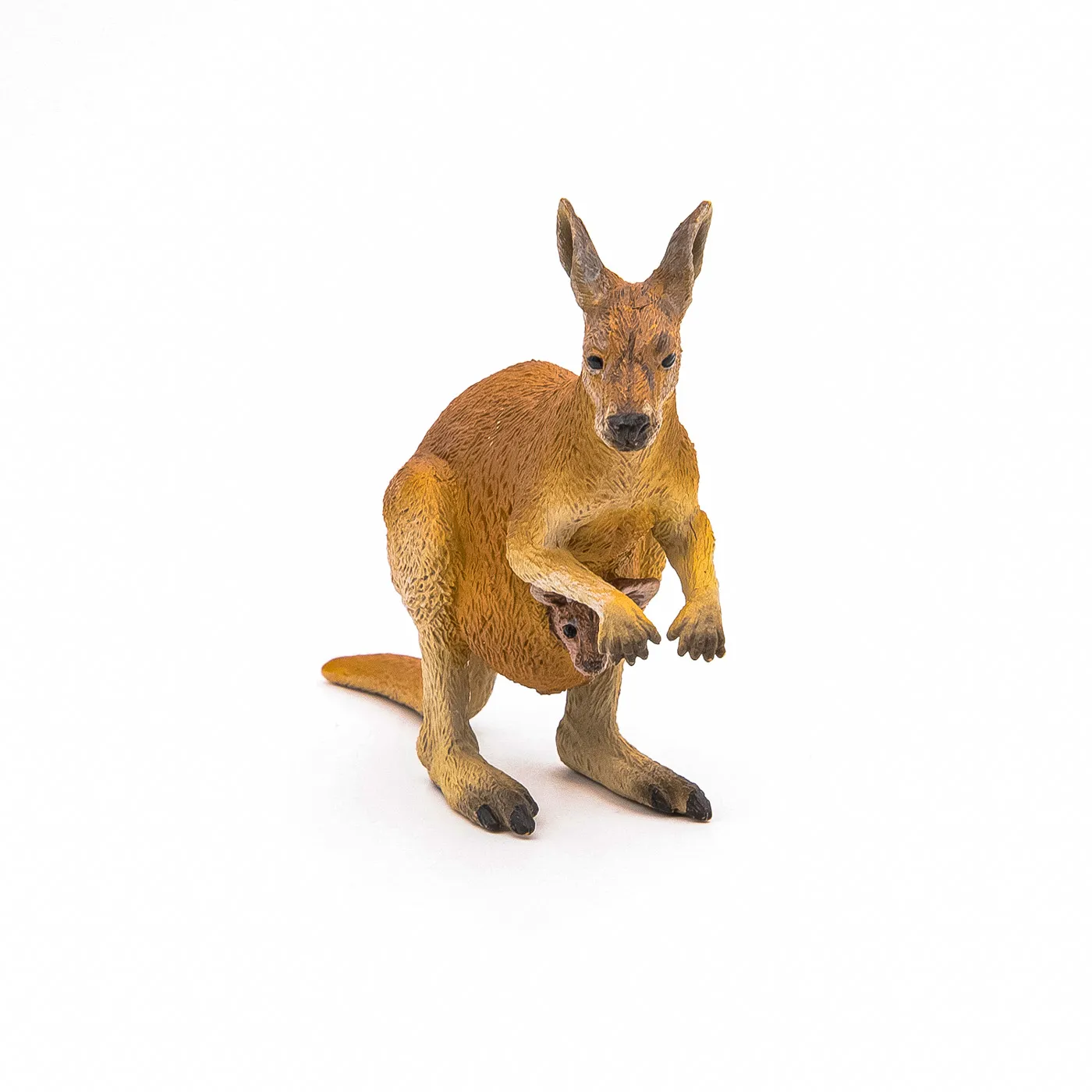 Vizitati cerbul cu coada alba maiestuoasa in inima padurilor, explorati savana alaturi de puternicul tigru de Sumatra sau urcati pe varfuri acoperite de zapada pentru a cauta leopardul de zapada. stiti ca cangurul este capabil sa-si intrerupa sarcina si poate avea pana la 3 bebelusi in acelasi timp in buzunar? La nastere, bebelusul masoara 2 pana la 3 cm si cantareste 1 g, ramane intre 235 si 250 de zile in buzunarul mamei. isi scoate capul din buzunar pentru prima data in jur de 5 pana la 6 luni. A parasit definitiv buzunarul 3 luni mai tarziu. Mama cangur este foarte atenta cand sare, pana la 3 metri, isi strange si contracta muschii pentru ca bebelusul ei sa ramana pe loc. Forma speciala a picioarelor si grosimea cozii o ajuta sa mearga cu usurinta. Cangurul este cel mai mare marsupial din lume care se gaseste in Australia continentala, Tasmania si Noua Guinee, dimensiunea lui poate depasi pe cea a unui om si se hraneste cu ierburi, frunze si lastari de copaci. Produsul are urmatoarele dimensiuni 10 x 3.5 x 7.5cm si este recomandat copiilor cu varsta peste 3 ani. De mai bine de 20 de ani, Papo inoveaza constant si ii face pe copii din intreaga lume sa viseze cu o gama bogata de peste 600 de produse, reprezentand 12 lumi, animale si personaje. De la modelul original la serie, fiecare dintre figurinele Papo a fost conceputa si creata in Franta pentru a fi fabricata intr-o permanenta preocupare pentru calitate. Pictate manual, atentia la detalii este acum recunoscuta. Figurinele Papo se disting prin acuratete si realism, detaliile sunt de asa natura incat am putea crede ca se vor pune in miscare.