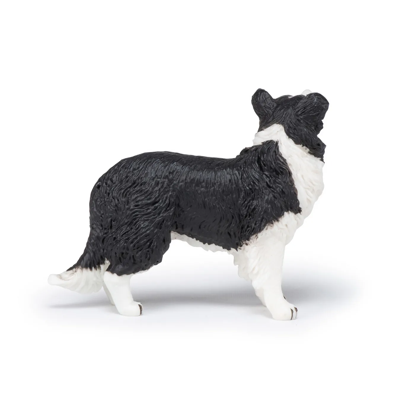 Indiferent daca preferati cainii sau pisicile, acestia sunt insotitori excelenti, mereu gata sa se joace sau sa iasa la plimbare. Mereu in alerta si in miscare, Border Collie este gata sa plece impreuna cu stapanul sau pentru a pastori turma! Acesta este un caine muncitor si un insotitor excelent. Originar din Marea Britanie, Border Collie isi ia numele din regiunea &bdquoBorders&rdquo, o zona mare situata de-a lungul granitei dintre Scotia si Anglia. Termenul englezesc &bdquoCollies&rdquo se refera la toti cainii ciobanesc scotian. Acesta este unul dintre cei mai dinamici si mai agili caini din lume. Energia si docilitatea sa aparent fara margini il fac un caine excelent, capabil sa invete si sa indeplineasca tot felul de sarcini. Are botul lung, ochi caprui si o blana cu par scurt sau mediu, care poate fi de diferite culori. Fiind mereu atent la stapanul sau, poate forma o legatura puternica cu el. Produsul are urmatoarele dimensiuni 9.5 x 9.5 x 2.46cm si este recomandat copiilor cu varsta peste 3 ani. De mai bine de 20 de ani, Papo inoveaza constant si ii face pe copii din intreaga lume sa viseze cu o gama bogata de peste 600 de produse, reprezentand 12 lumi, animale si personaje. De la modelul original la serie, fiecare dintre figurinele Papo a fost conceputa si creata in Franta pentru a fi fabricata intr-o permanenta preocupare pentru calitate. Pictate manual, atentia la detalii este acum recunoscuta. Figurinele Papo se disting prin acuratete si realism, detaliile sunt de asa natura incat am putea crede ca se vor pune in miscare.