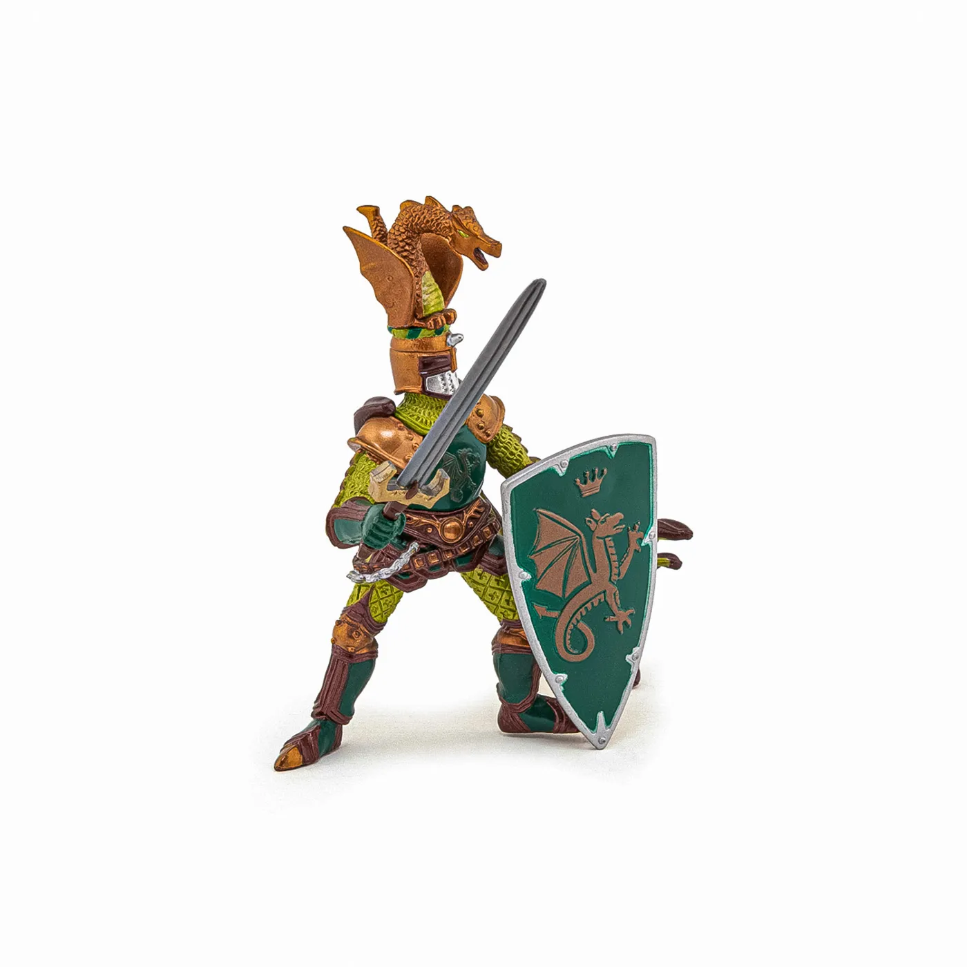 Cu figuri fantastice ale lumii, vei calaretui dragoni, vei lupta alaturi de orci si centauri si vei lupta impotriva puternicului minotaur. Cu figurinele lumii medievale traiesc batalii epice, apara-ti regatul impotriva inamicului sau infrunta cavaleri intr-un duel. Pe calul sau, dragonul maestru al armelor pleaca in lupta inarmat sa intalneasca inamicul. Purtand vesta de zale, armura si acoperit cu superba sa casca cu creasta, el si-a imbracat maiestuoasa pelerina verde si cupru. El este inarmat cu sabia lui lunga si cu scutul sau care poarta emblema sa un dragon, care este un simbol al puterii. Calul sau a fost bine pregatit si poarta un capar pentru a-l proteja de inamic. Armura capului calului este acoperita cu aripi de dragon, in timp ce un scut ii protejeaza sanul. impreuna, formeaza un duo imbatabil pentru a lupta cu cavalerii fantastici Produsul are urmatoarele dimensiuni 10 x 10 x 11cm si este recomandat copiilor cu varsta peste 3 ani. De mai bine de 20 de ani, Papo inoveaza constant si ii face pe copii din intreaga lume sa viseze cu o gama bogata de peste 600 de produse, reprezentand 12 lumi, animale si personaje. De la modelul original la serie, fiecare dintre figurinele Papo a fost conceputa si creata in Franta pentru a fi fabricata intr-o permanenta preocupare pentru calitate. Pictate manual, atentia la detalii este acum recunoscuta. Figurinele Papo se disting prin acuratete si realism, detaliile sunt de asa natura incat am putea crede ca se vor pune in miscare.