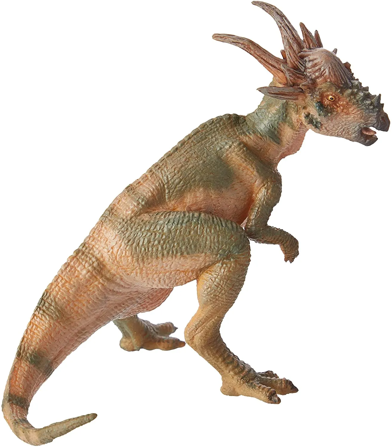 Cu dinozauri, calcati pamantul jurasic, intalniti legendarul T-Rex, plimbati-va prin campii vaste cu velociraptorul sau zburati cu un pteranodon. Ce poate fi mai frumos decat sa explorezi varietatea speciilor de animale si pasari existente pe Terra inca din cele mai vechi timpuri. Acum iti poti imbogati cunostintele intr-un mod interactiv prin intermediul figurinelor licentiate Papo! Figurina Papo-Stygimoloch este o jucarie pictata manual care atrage prin detaliile care redau infatisarea animalului viu. Acesta s-a destins prin randul de tepi de pe spatele capului, in spatele cupolei caracteristice familiei din care face parte. Figurina Papo-Stygimoloch este o jucarie educationala, care poate fi colectionata atat de copii cat si de adulti! Acum poti crea propria ta lume a dinozaurilor! Produsul are urmatoarele dimensiuni 9 x 7 x 8cm si este recomandat copiilor cu varsta peste 3 ani. De mai bine de 20 de ani, Papo inoveaza constant si ii face pe copii din intreaga lume sa viseze cu o gama bogata de peste 600 de produse, reprezentand 12 lumi, animale si personaje. De la modelul original la serie, fiecare dintre figurinele Papo a fost conceputa si creata in Franta pentru a fi fabricata intr-o permanenta preocupare pentru calitate. Pictate manual, atentia la detalii este acum recunoscuta. Figurinele Papo se disting prin acuratete si realism, detaliile sunt de asa natura incat am putea crede ca se vor pune in miscare.