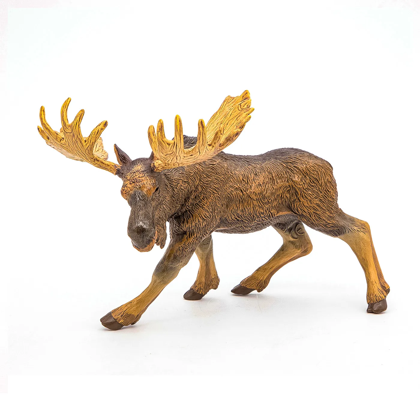 Vizitati cerbul cu coada alba maiestuoasa in inima padurilor, explorati savana alaturi de puternicul tigru de Sumatra sau urcati pe varfuri acoperite de zapada pentru a cauta leopardul de zapada. Elanul este cel mai mare exemplar din familia sa cervidele. Acest lucru se datoreaza dimensiunii impresionante ale coarnelor sale in forma de evantai. Se hraneste in principal cu iarba, plante acvatice, frunze, ramuri, scoarta si alte plante. Este un animal solitar care intra in contact cu alti membri ai speciei sale doar in timpul sezonului de reproducere. stiati ca dupa aceasta perioada coarnele urmeaza sa ii cada si apoi sa recreasca in timpul iernii? Produsul are urmatoarele dimensiuni 15.5 x 9.8 x 10.6cm si este recomandat copiilor cu varsta peste 3 ani. De mai bine de 20 de ani, Papo inoveaza constant si ii face pe copii din intreaga lume sa viseze cu o gama bogata de peste 600 de produse, reprezentand 12 lumi, animale si personaje. De la modelul original la serie, fiecare dintre figurinele Papo a fost conceputa si creata in Franta pentru a fi fabricata intr-o permanenta preocupare pentru calitate. Pictate manual, atentia la detalii este acum recunoscuta. Figurinele Papo se disting prin acuratete si realism, detaliile sunt de asa natura incat am putea crede ca se vor pune in miscare.