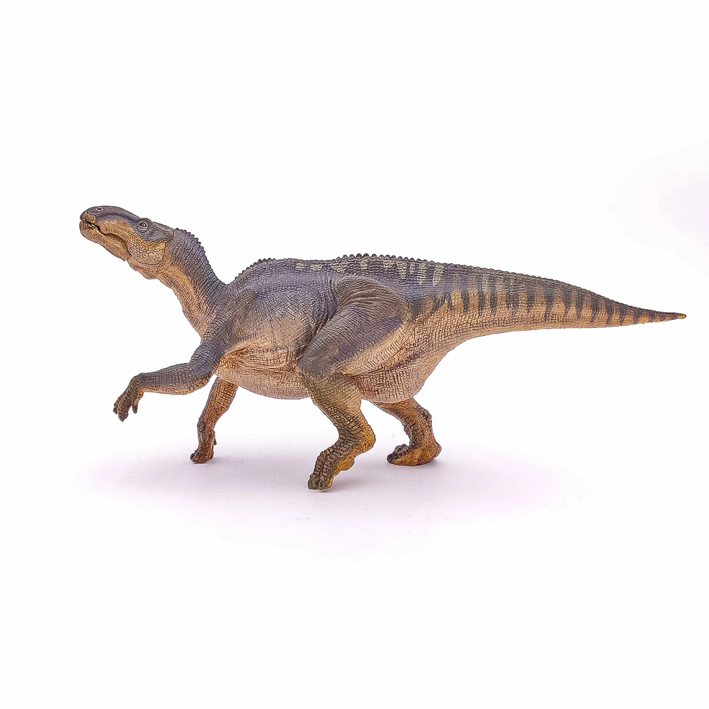 Cu dinozauri, calcati pamantul jurasic, intalniti legendarul T-Rex, plimbati-va prin campii vaste cu velociraptorul sau zburati cu un pteranodon. Dinozaurul Iguanodon a trait in era Mezozoica in Cretacicul inferior, mai este cunoscut si sub numele de Soparla iguana. Dinozaurul Iguanodon avea o lungime de aproximativ 9 metri si cantarea aproximativ 4-5 tone. Acesta era un animal ierbivor si traia in special in apropierea apelor. Conform celor descoperite de catre arheologi, corpul masculilor era mult mai mare decat cel al femelelor, ei traiau in turme si se protejau, iar cand se aflau in pericol se refungiau in rauri. Produsul are urmatoarele dimensiuni 24.5 x 6.5 x 10.5cm si este recomandat copiilor cu varsta peste 3 ani. De mai bine de 20 de ani, Papo inoveaza constant si ii face pe copii din intreaga lume sa viseze cu o gama bogata de peste 600 de produse, reprezentand 12 lumi, animale si personaje. De la modelul original la serie, fiecare dintre figurinele Papo a fost conceputa si creata in Franta pentru a fi fabricata intr-o permanenta preocupare pentru calitate. Pictate manual, atentia la detalii este acum recunoscuta. Figurinele Papo se disting prin acuratete si realism, detaliile sunt de asa natura incat am putea crede ca se vor pune in miscare.