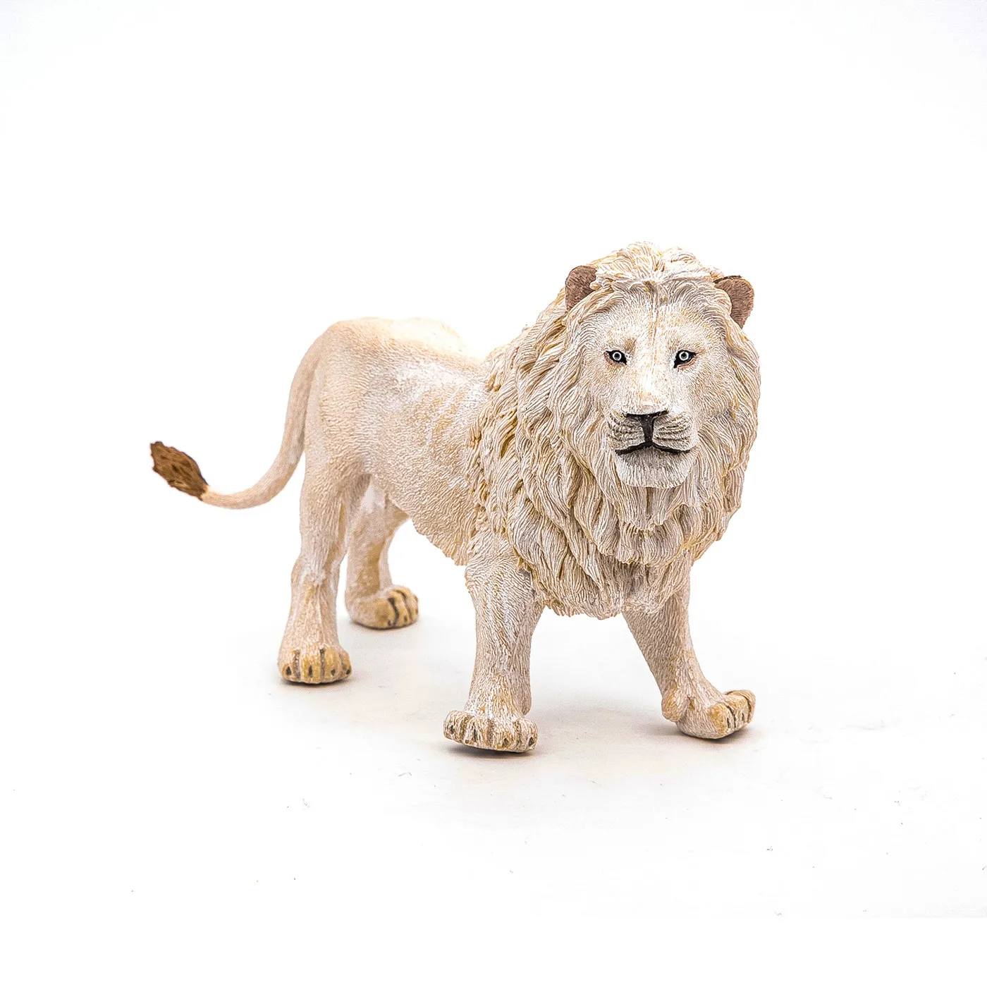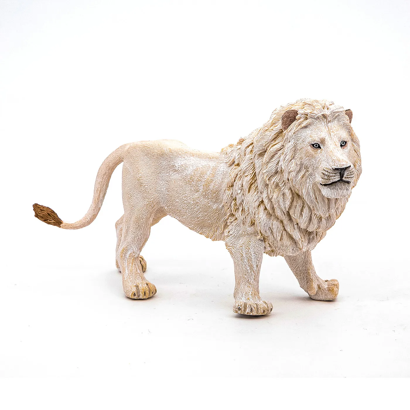 Vizitati cerbul cu coada alba maiestuoasa in inima padurilor, explorati savana alaturi de puternicul tigru de Sumatra sau urcati pe varfuri acoperite de zapada pentru a cauta leopardul de zapada. Felina magnifica, leul este un simbol al fortei si curajului. Este cel mai puternic si cel mai mare carnivor din Africa. Recunoscut dupa coama lunga, leul a fost botezat &bdquoregele animalelor&rdquo. Are un corp lung, cu muschi impresionanti si picioare puternice cu gheare. Acest pradator mare cantareste aproape 250 kg. El domneste asupra teritoriului sau si isi protejeaza trupa formata din mai multe femele. Se hraneste in principal cu vite si vaneaza alte animale precum bivoli, girafe, zebre . Poate devora pana la 30 kg de carne odata. Leul alb este foarte rar in salbaticie, blana lui dandu-i un dezavantaj cert atunci cand vine vorba de vanatoare. intr-adevar, il face prea vizibil pentru ochii prazii sale. Prin urmare, traieste in principal in rezervatii naturale sau parcuri zoologice. Produsul are urmatoarele dimensiuni 14.5 x 4.7 x 8.2cm si este recomandat copiilor cu varsta peste 3 ani. De mai bine de 20 de ani, Papo inoveaza constant si ii face pe copii din intreaga lume sa viseze cu o gama bogata de peste 600 de produse, reprezentand 12 lumi, animale si personaje. De la modelul original la serie, fiecare dintre figurinele Papo a fost conceputa si creata in Franta pentru a fi fabricata intr-o permanenta preocupare pentru calitate. Pictate manual, atentia la detalii este acum recunoscuta. Figurinele Papo se disting prin acuratete si realism, detaliile sunt de asa natura incat am putea crede ca se vor pune in miscare.
