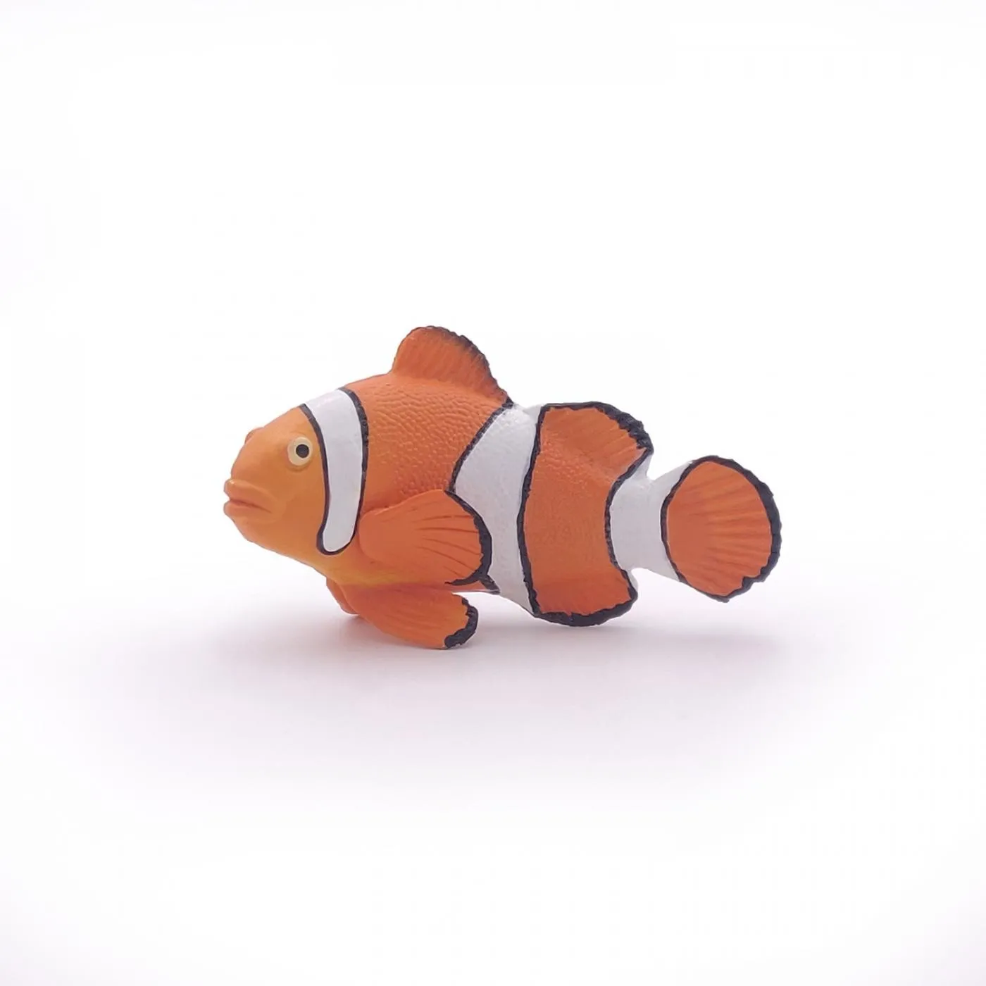 Scufundati-va cu balenele cu cocoasa, sariti in valuri alaturi de delfini sau deveniti un om-broasca capabil sa exploreze adancurile oceanului in cautarea unor exemplare magnifice precum pestele clovn. Apartinand familiei pomacentridae, acesti pesti mici care masoara aproximativ 10 cm prezinta culori portocalii stralucitoare cu dungi negre si uneori albe. Pestele clovn traieste in recifele de corali sau in lagunele oceanelor Indian si Pacific si in Marea Rosie. Sunt hermafroditi secventiali (uneori femei, alteori barbati). Produsul are urmatoarele dimensiuni 6 x 2 x 3.5cm si este recomandat copiilor cu varsta peste 3 ani. De mai bine de 20 de ani, Papo inoveaza constant si ii face pe copii din intreaga lume sa viseze cu o gama bogata de peste 600 de produse, reprezentand 12 lumi, animale si personaje. De la modelul original la serie, fiecare dintre figurinele Papo a fost conceputa si creata in Franta pentru a fi fabricata intr-o permanenta preocupare pentru calitate. Pictate manual, atentia la detalii este acum recunoscuta. Figurinele Papo se disting prin acuratete si realism, detaliile sunt de asa natura incat am putea crede ca se vor pune in miscare.