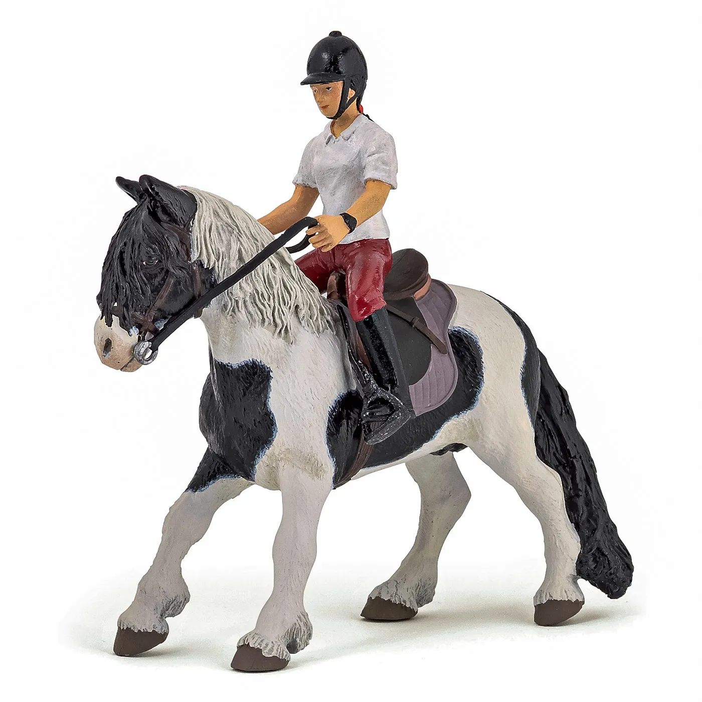 Faceti o plimbare prin campuri cu ecvinele Papo, participati la concursuri de sarituri sau chiar la cursuri de dresaj. Acest tanar ponei alb-negru mai are multe de invatat. intotdeauna bine dispus, are si un temperament jucaus care a cucerit inima multor tineri calareti. impreuna le place sa mearga ore intregi impreuna. Produsul are urmatoarele dimensiuni 10.9 x 4.2 x 9.5cm si este recomandat copiilor cu varsta peste 3 ani. De mai bine de 20 de ani, Papo inoveaza constant si ii face pe copii din intreaga lume sa viseze cu o gama bogata de peste 600 de produse, reprezentand 12 lumi, animale si personaje. De la modelul original la serie, fiecare dintre figurinele Papo a fost conceputa si creata in Franta pentru a fi fabricata intr-o permanenta preocupare pentru calitate. Pictate manual, atentia la detalii este acum recunoscuta. Figurinele Papo se disting prin acuratete si realism, detaliile sunt de asa natura incat am putea crede ca se vor pune in miscare.