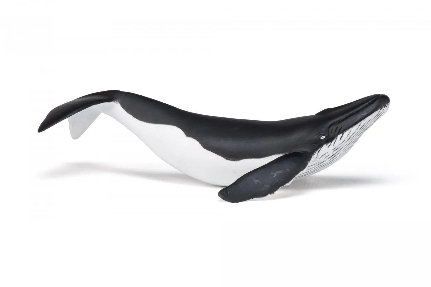 Scufundati-va cu balenele cu cocoasa, sariti in valuri alaturi de delfini sau deveniti un om-broasca capabil sa exploreze adancurile oceanului in cautarea unor exemplare magnifice precum pestele clovn. Balena cu cocoasa este unul dintre cele mai mari animale din lume. Gasit in toate oceanele si marile lumii, acest mamifer cetacee masoara in medie 15 m si poate cantari pana la 40 de tone. Ceea ce il face atat de distinctiv sunt aripioarele mari si umflaturile de pe cap. De asemenea, se remarca prin culorile sale – negru deasupra si alb dedesubt – care uneori pot fi admirate in timpul salturilor spectaculoase din apa. Pe langa aspectul lor maiestuos, balenele sunt cunoscute pentru cantecele lor complexe, care suna pentru urechile oamenilor ca o melodie ciudata si fantastica. Pentru balena cu cocoasa, imperecherea are loc in ape tropicale sau calde si este urmata de un an de gestatie. Dupa nastere, puiul va ramane dependent de mama sa pana la varsta de 6 ani, perioada in care devine suficient de impunator si, prin urmare, nu mai este o prada usoara pentru pradatorii sai. Produsul are urmatoarele dimensiuni 14 x 9 x 4cm si este recomandat copiilor cu varsta peste 3 ani. De mai bine de 20 de ani, Papo inoveaza constant si ii face pe copii din intreaga lume sa viseze cu o gama bogata de peste 600 de produse, reprezentand 12 lumi, animale si personaje. De la modelul original la serie, fiecare dintre figurinele Papo a fost conceputa si creata in Franta pentru a fi fabricata intr-o permanenta preocupare pentru calitate. Pictate manual, atentia la detalii este acum recunoscuta. Figurinele Papo se disting prin acuratete si realism, detaliile sunt de asa natura incat am putea crede ca se vor pune in miscare.