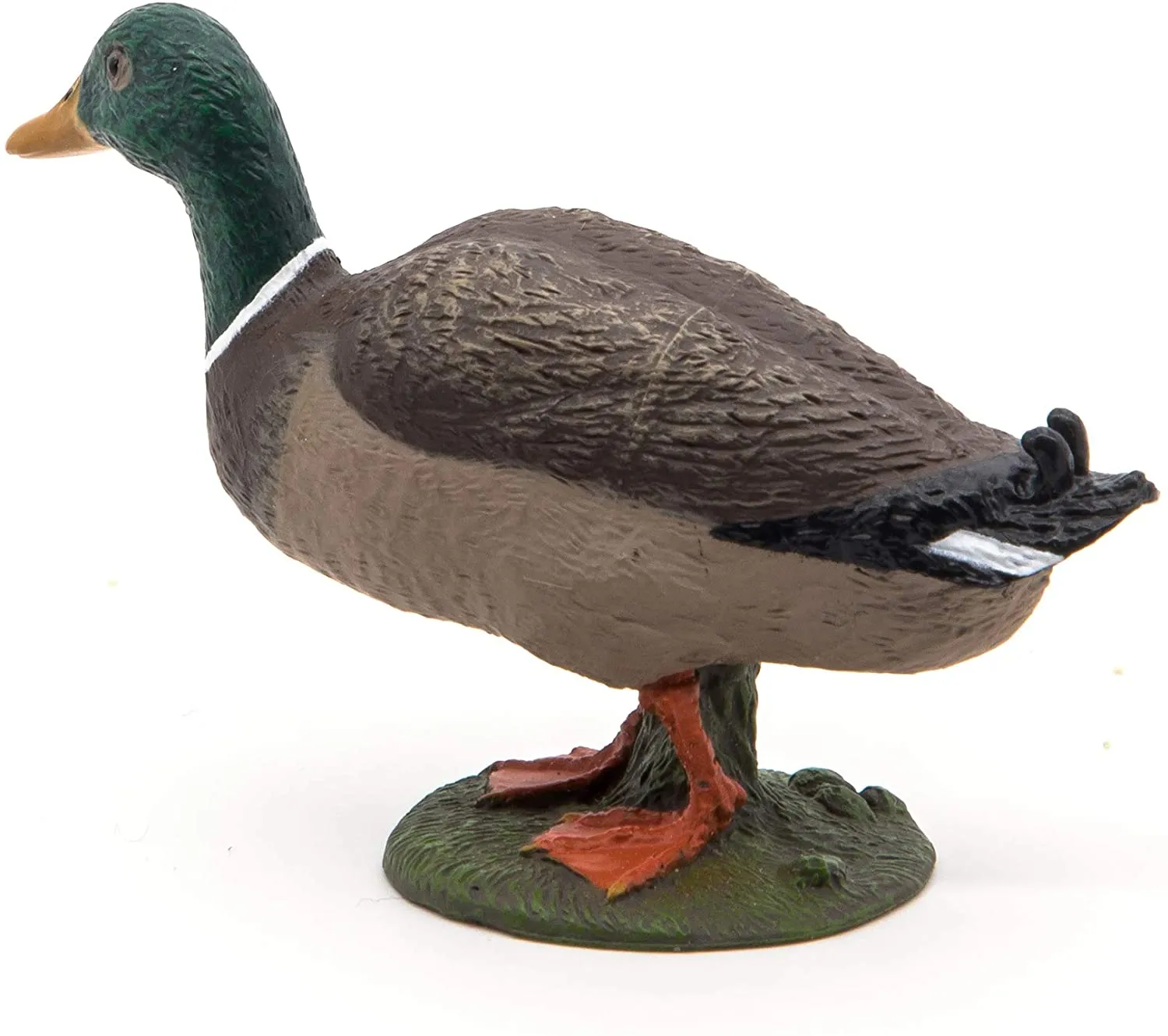 Cu figurinele universului fermei, trezeste-te cu cantatul cocosului, mergi sa hranesti animalele si ridica fructele si legumele gradinii de legume. Rata Mallard este o pasare migratoare recunoscuta usor prin penajul ei. In cadrul speciei ratoiul este cel pe care il remarcam usor dupa capul sau acoperit cu pene verzi si dunga subtire alba de la baza gatului. Ratele Mallard in schimb au un penaj in tonuri de maron. Cercetatorii au cronometrat viteza de deplasare a unui stol de rate Malard si au constatat ca acestea se deplaseaza cu o viteza medie de 55 km/h! Produsul are urmatoarele dimensiuni 7 x 4.9 x 3cm si este recomandat copiilor cu varsta peste 3 ani. De mai bine de 20 de ani, Papo inoveaza constant si ii face pe copii din intreaga lume sa viseze cu o gama bogata de peste 600 de produse, reprezentand 12 lumi, animale si personaje. De la modelul original la serie, fiecare dintre figurinele Papo a fost conceputa si creata in Franta pentru a fi fabricata intr-o permanenta preocupare pentru calitate. Pictate manual, atentia la detalii este acum recunoscuta. Figurinele Papo se disting prin acuratete si realism, detaliile sunt de asa natura incat am putea crede ca se vor pune in miscare.