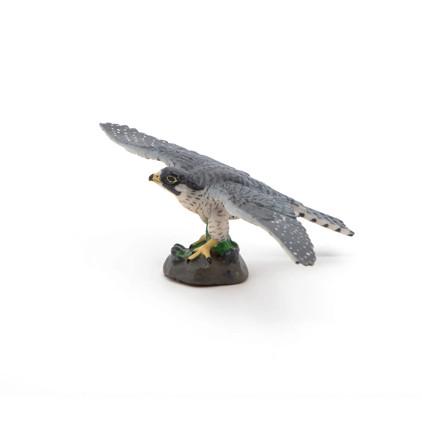 Vizitati cerbul cu coada alba maiestuoasa in inima padurilor, explorati savana alaturi de puternicul tigru de Sumatra sau urcati pe varfuri acoperite de zapada pentru a cauta leopardul de zapada. Soimul este remarcabil pentru capacitatile sale de zbor. in perioada nuptiala, cei doi parteneri se angajeaza in jocuri aeriene urmariri, scufundari ametitoare, bucle, un spectacol spectaculos! Are capul rotund destul de mare in comparatie cu corpul, obrajii sunt marcati cu o pata mare neagra iar ciocul este curbat si scurt. Penajul este gri pe spate si alb pana la alb roscat in partea inferioara punctat cu &bdquolacrimi&rdquo maro, iar picioarele sunt galbene. Soimul se gaseste in toate partile lumii, cu exceptia regiunilor polare. Produsul are urmatoarele dimensiuni11 x 6.5 x 3cm si este recomandat copiilor cu varsta peste 3 ani. De mai bine de 20 de ani, Papo inoveaza constant si ii face pe copii din intreaga lume sa viseze cu o gama bogata de peste 600 de produse, reprezentand 12 lumi, animale si personaje. De la modelul original la serie, fiecare dintre figurinele Papo a fost conceputa si creata in Franta pentru a fi fabricata intr-o permanenta preocupare pentru calitate. Pictate manual, atentia la detalii este acum recunoscuta. Figurinele Papo se disting prin acuratete si realism, detaliile sunt de asa natura incat am putea crede ca se vor pune in miscare.