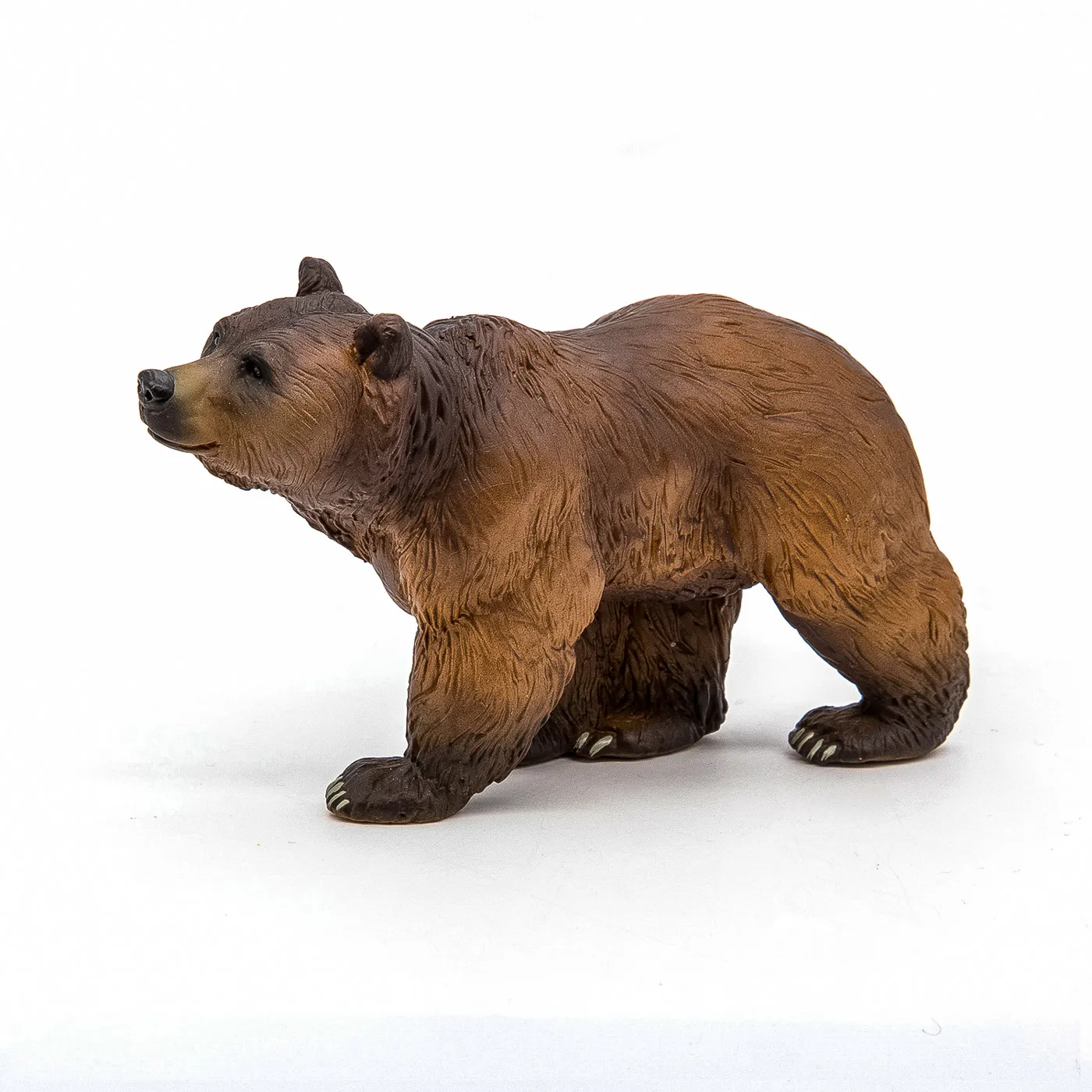 Vizitati cerbul cu coada alba maiestuoasa in inima padurilor, explorati savana alaturi de puternicul tigru de Sumatra sau urcati pe varfuri acoperite de zapada pentru a cauta leopardul de zapada. in Pirinei puteti intalni populatia de ursi bruni din America de Nord. Dimensiunea lor impresionanta ii plaseaza printre cele mai impunatoare mamifere din specia lor dupa ursul polar. Ursul din Pirinei poate masura pana la 2 metri si cantareste intre 120 si 200 de kilograme. Este unul dintre cele mai puternice animale terestre de pe planeta! Acest omnivor se hraneste in principal cu plante, fructe de padure si fructe. Cu toate acestea, uneori devoreaza insecte (furnici, albine…) sau mici mamifere. Pentru a rezista toata iarna, ursul din Pirinei se hraneste intens toata vara, apoi se alatura barlogului si hiberneaza din noiembrie pana in martie. Speranta sa de viata este intre 20 si 25 de ani. Produsul are urmatoarele dimensiuni 11 x 4 x 6cm si este recomandat copiilor cu varsta peste 3 ani. De mai bine de 20 de ani, Papo inoveaza constant si ii face pe copii din intreaga lume sa viseze cu o gama bogata de peste 600 de produse, reprezentand 12 lumi, animale si personaje. De la modelul original la serie, fiecare dintre figurinele Papo a fost conceputa si creata in Franta pentru a fi fabricata intr-o permanenta preocupare pentru calitate. Pictate manual, atentia la detalii este acum recunoscuta. Figurinele Papo se disting prin acuratete si realism, detaliile sunt de asa natura incat am putea crede ca se vor pune in miscare.