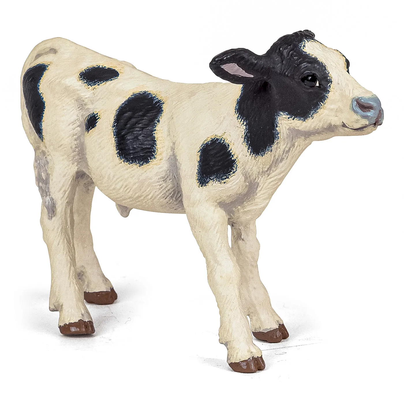Cu figurinele universului fermei, trezeste-te cu cantatul cocosului, mergi sa hranesti animalele si ridica fructele si legumele gradinii de legume. Tot ce vrea sa faca vitelul nostru este sa se intoarca la mama lui, care i-a permis sa rataceasca putin in timp ce ea pasca. A vazut-o printre celelalte vaci si se va alatura ei imediat, deoarece nu poate inca sa pasca singurul mijloc de a se hrani este sa bea laptele mamei sale… si ii este foarte foame. Produsul are urmatoarele dimensiuni 10 x 4 x 6cm si este recomandat copiilor cu varsta peste 3 ani. De mai bine de 20 de ani, Papo inoveaza constant si ii face pe copii din intreaga lume sa viseze cu o gama bogata de peste 600 de produse, reprezentand 12 lumi, animale si personaje. De la modelul original la serie, fiecare dintre figurinele Papo a fost conceputa si creata in Franta pentru a fi fabricata intr-o permanenta preocupare pentru calitate. Pictate manual, atentia la detalii este acum recunoscuta. Figurinele Papo se disting prin acuratete si realism, detaliile sunt de asa natura incat am putea crede ca se vor pune in miscare.
