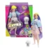 Papusile Barbie Extra etaleaza tinute indraznete, culori vii si iau atitudine! Fiecare papusa Barbie are propriul stil jucaus si exagerat. Animalele lor de companie sunt diferite, adorabile si au si ele o personalitate puternica! Barbie Extra permite copiilor sa exploreze exprimarea de sine prin stil si ofera o experienta de moda si stilizare captivanta, cu papusi ce prezinta articulatii. Barbie Extra reprezinta distractie la moda cu sclipici, ursuleti gumati, emoji si par distinctiv, aducand un vibe EXTRA oriunde merg. Fiecare se vinde separat, in limita stocului disponibil. Papusile nu isi pot mentine pozitia fara sprijin. Acest set contine o papusa cu par in nuante de mov si roz si poarta pe cap o caciula la moda verde fosforescent iar ca animal de companie are un catel alb.