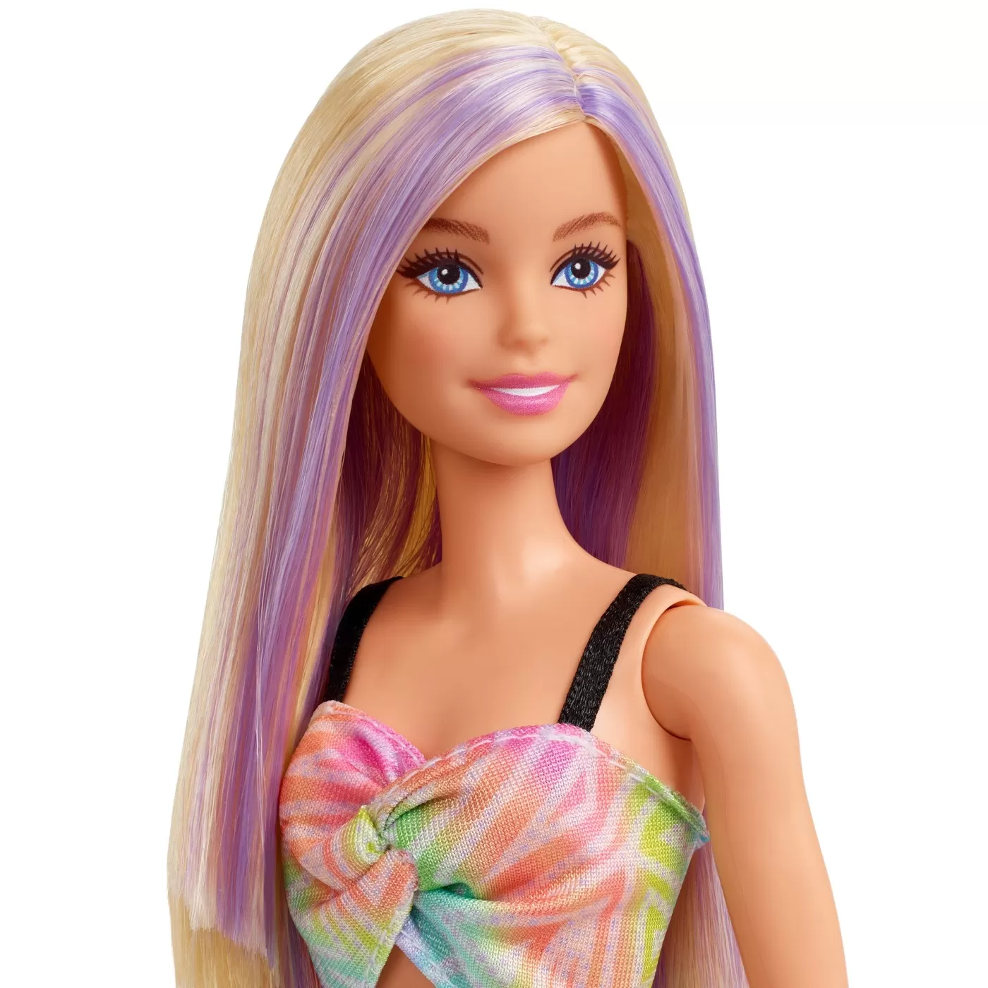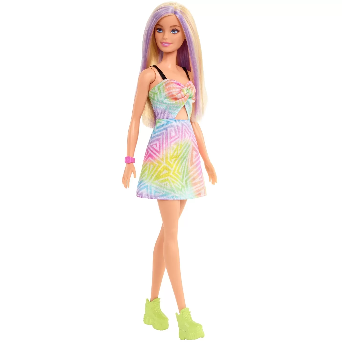 Fashionistas este una dintre cele mai indragite colectii Barbie, oferind o gama larga de papusi cu diferite stiluri si accesorii, introducand conceptul de diversitate si acceptare in randul fetelor. Aceasta colectie include papusi cu diferite tipuri de siluete, tonuri de piele, culori de ochi si par, astfel fetele nu se vor plictisi niciodata si isi vor gasi papusa asemanatoare stilului lor. Papusile au stilul lor propriu, inspirat de ultimele tendinte din moda si vin cu o tinuta completa, incaltaminte si accesorii fabuloase. Hainutele sunt confectionate astfel incat se pot potrivi oricarei papusi din gama Fashionistas. Descopera fiecare papusa Barbie din colectia Barbie Fashionistas si exploreaza lumea minunata a modei! Papusa blonda este imbracata intr-o rochie cu imprimeu grafic. In picioare are o pereche de adidasi galbeni.