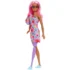 Fashionistas este una dintre cele mai indragite colectii Barbie, oferind o gama larga de papusi cu diferite stiluri si accesorii, introducand conceptul de diversitate si acceptare in randul fetelor. Aceasta colectie include papusi cu diferite tipuri de siluete, tonuri de piele, culori de ochi si par, astfel fetele nu se vor plictisi niciodata si isi vor gasi papusa asemanatoare stilului lor. Papusile au stilul lor propriu, inspirat de ultimele tendinte din moda si vin cu o tinuta completa, incaltaminte si accesorii fabuloase. Hainutele sunt confectionate astfel incat se pot potrivi oricarei papusi din gama Fashionistas. Descopera fiecare papusa Barbie din colectia Barbie Fashionistas si exploreaza lumea minunata a modei! Papusa cu par roz este imbracata intr-o rochie cu imprimeu floral si are o pereche de ochelari de soare. Are un picior protetic si o pereche de adidasi blue.