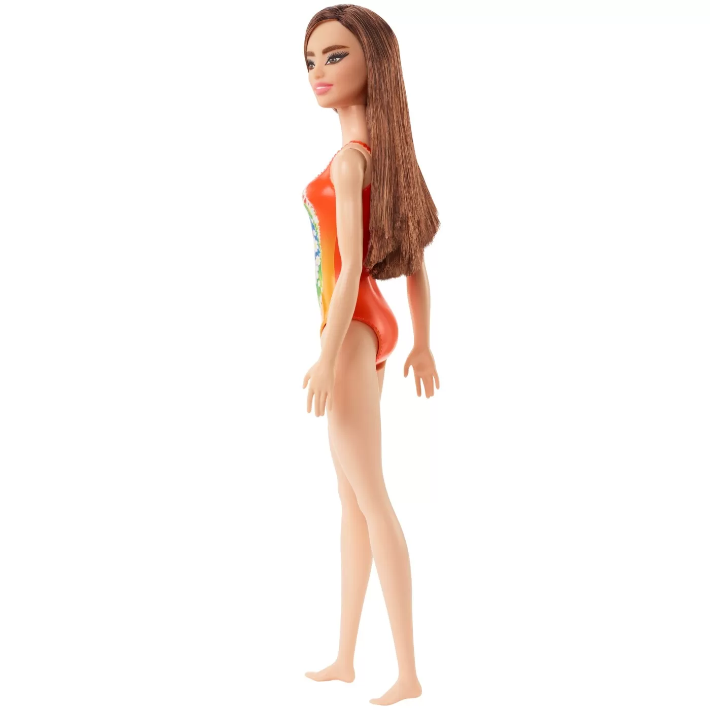 Papusa Barbie se distreaza de fiecare data cand are ocazia sa petreaca o zi la plaja, acum are si un costum minunat cu imprimeu vesel si colorat pentru balaceala. Cei mici se vor distra la petrecerile de la piscina si mai ales vacanta de vara alaturi de aceasta colectie de papusi Barbie la plaja. Acest pachet contine o papusa satena imbracata intr-un costum de baie portocaliu.
