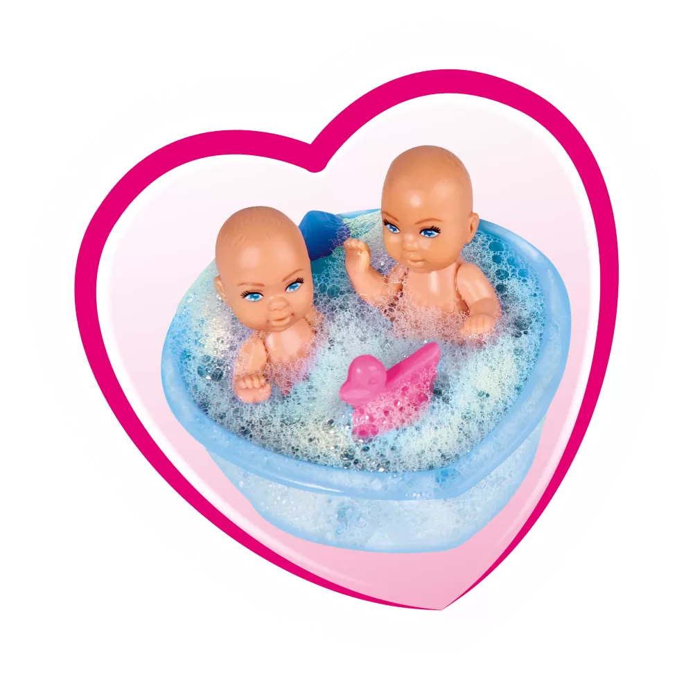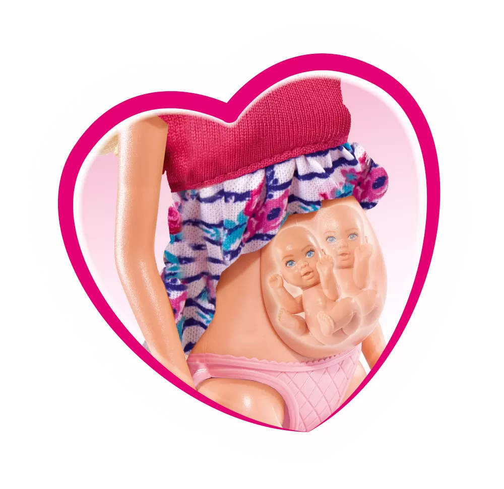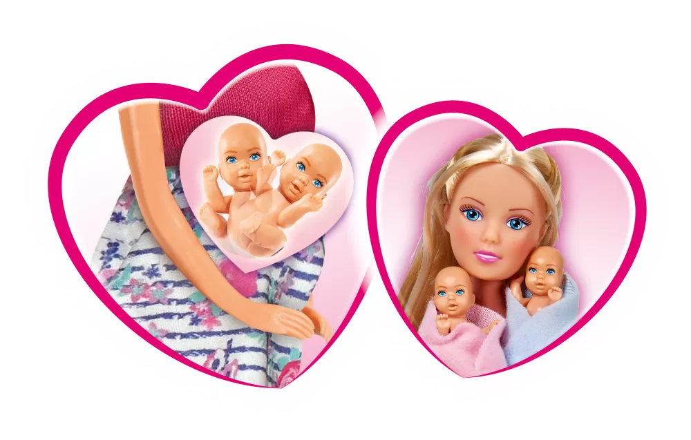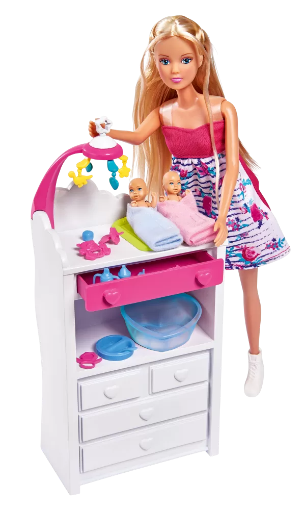 Papusa Steffi insarcinata cu gemeni + masuta de schimbat scutece si multe accesorii, 29 cm