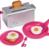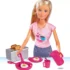 Steffi cu accesorii pentru micul dejun – Steffi adora sa ia micul dejun. Cu setul de 14 bucati, ea poate face oua prajite in tigaie si le poate servi pe farfurie. Desigur, nu trebuie sa lipseasca doua felii de paine prajita si cafea. Toster cu functie – daca puneti cele doua felii de paine prajita in sloturile prajitorului de paine si impingeti maneta in sus, painea prajita zboara din prajitor de paine ca si cum ar fi reala. Continutul setului – setul include o papusa Steffi LOVE intr-o rochie casual, precum si un prajitor de paine cu doua felii de paine prajita, o tigaie cu o spatula, un ulcior, o ceasca si tacamuri.