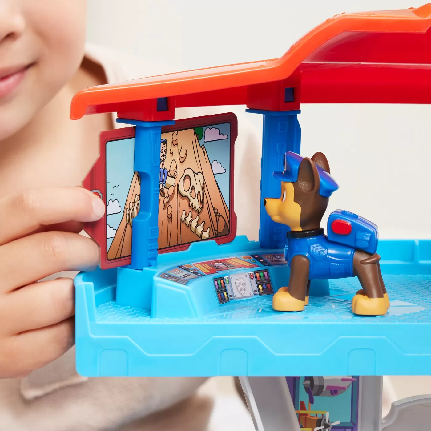 Chase este gata de actiune in setul de joc Turnul de observatie Patrula Catelusilor. Acest set de joaca exclusiv include Turnul de observatie din serial, alaturi de crucisatorulde politie al lui Chase si doua figurine de actiune Chase Chase in timpul Liber si Chase Catelusul Erou. Cu o inaltime de 50,8 cm, turnul de observatie este locul perfect dincare poti vedea orice fel de probleme care apar. Atunci cand este nevoie sa pornesti intr-o misiune de salvare interesanta, pune figurina Chase in timpul liber in fata liftuluiturnului si figurina Chase Catelusul Erou in spatele liftului. Ridica liftul pentru a-l face sa se roteasca si priveste cum Chase aflat in timpul liber se pregateste de actiune intimp ce se transforma in Chase eroul. Odata ce se afla in varful Turnului de observatie, treci la panoul de control al misiunii pentru a-ti selecta detaliile misiunii pentru ziuarespectiva, alegand una dintre cele 3 carti de misiune cu doua fete. Dupa ce ai selectat cardul de misiune, alege una dintre cele 3 carti cu periscop cu doua fete, pentrua vedea prin periscopul turnului, astfel incat sa stii unde veti merge. Atunci cand este timpul pentru o super misiune de salvare, gliseaza-l pe Chase in jos pe toboganulturnului pentru a sari direct in crucisatorul de politie, iar apoi apasa pe lansatorul de vehicul si pleaca in actiune. Pentru si mai multe moduri de joc, colectioneaza restul puiloruimitori din Patrula, precum Marshall, Skye si Rubble, impreuna cu vehiculele lor de baza, pentru a avea parte de aventuri si mai interesante in timpul jocului. Cu jucariilePatrula Catelusilor, copiii isi pot explora imaginatia si isi pot dezvolta abilitatile motorii, prin jocuri de simulare, in timp ce aduc la viata scenele preferate din serial. Figurinelede actiune, masinile de jucarie, seturile de joaca si animalele de plus Patrula Catelusilor sunt jucariile perfecte pentru baietii si fetele cu varsta de cel putin 3 ani. Ia acasachiar astazi entuziasmul Patrulei Catelusilor.