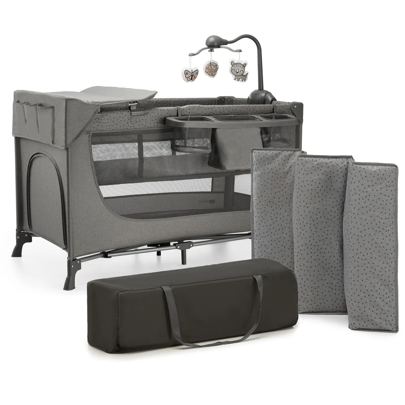 Pătuț de călătorie cu accesorii Kinderkraft JOY, 2 în 1, GREY   Pătuțul de călătorie JOY 2 în 1 GREY este soluția ideală pentru toți părinții, care călătoresc des. Este ușor de pliat până la dimensiuni compacte, ușor și rezistent, iar setul conține o geantă de transport co…