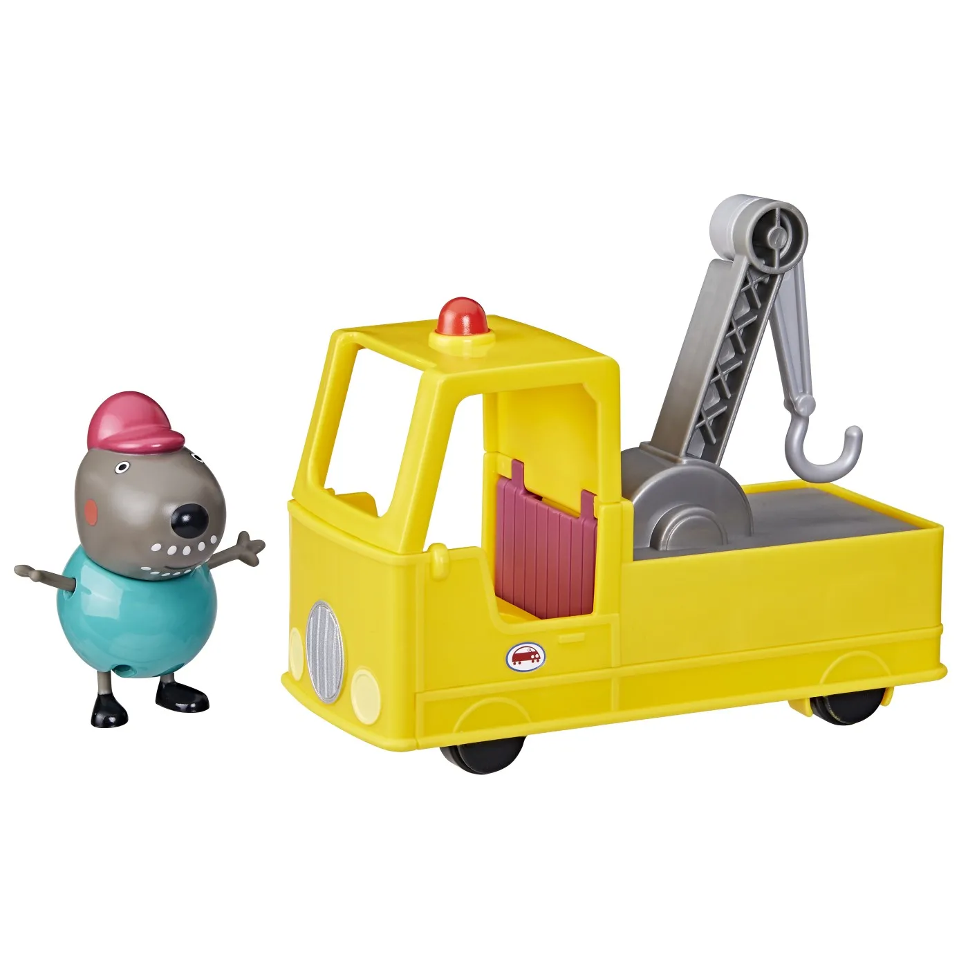 Uh oh, masina s-a stricat? Nu va faceti griji &mdash Camionul de remorcare a cainelui bunicului este aici! Acest set de jucarii Peppa Pig vine cu o jucarie cu remorcare rotiti-l inapoi si apoi uitati-va cum merge! Figurina Bunicul Caine poate incapea in interiorul cabinei, iar acoperisul cu balamale le face usor pentru mainile mici sa introduca si sa iasa figurina. Carligul de remorcare mobil le permite copiilor sa-si imagineze scene din spectacol sau sa inventeze noi aventuri! Jucariile Peppa, cum ar fi Camionul de remorcare al lui Granddad Dog, se bazeaza pe personajele preferate Peppa Pig si sunt cadouri grozave pentru baietii si fetele de 3 ani si peste, sau pentru orice copil care iubeste jucariile de constructie sau vehiculele de jucarie.