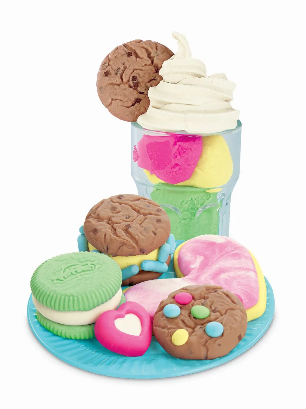 Stii cat este ceasul? Este timpul pentru gustari haioase facute din plastilina Play-Doh! Copiii de 3 ani si mai mari care adora sa fie creativi cu jucarii de gatit si plastilina modelatoare vor fi incantati sa creeze propriile versiuni Play-Doh ale gustarilor preferate de copii. Cu ustensile Play-Doh usor de folosit si plastilina Play-Doh in culori variate, sunt atat de multe creatii pe care imaginatia lor le poate &bdquogati&rdquo! Creeaza preparate uimitoare, adauga stralucire creatiilor tale cu acest set de alimente din aluat de modelat. Copiii pot deschide aceste cutii de Play-Doh si pot modela lutul pentru a crea versiuni ale mancarurilor lor preferate. Fiecare set cu tematica de fursecuri, burgeri, paste si inghetata include ustensile Play-Doh usor de utilizat si 225 g de aluat de diferite culori. Acest contine setul de gatit fursecuri.