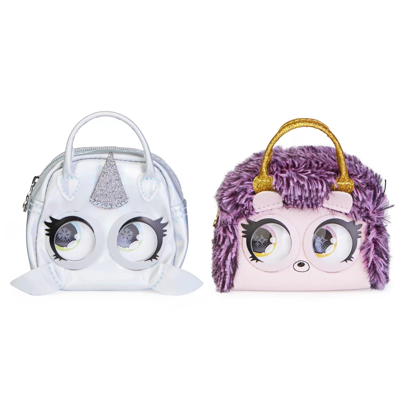 Da viata aspectului tau intr-un mod cu totul nou! Va prezentam Micro Purse Pets mini posete care sunt mici in dimensiune dar foarte stilate! Aceste gentute minuscule au fiecare aspectul lor unic si au pe ele ochi inspirati de pop-art care se rostogolesc atunci cand deschizi si inchizi fermoarul! Cu detaliile lor la moda, exista atat de multe moduri de a-ti alinta Micro Purse Pet. Prinde-l de unul dintre Purse Pets mari din colectia ta (vandut separat) sau de rucsacul tau, tine-ti poseta de maner sau poarta-l pe incheietura mainii. Amesteca si combina diferite Micro Purse Pets si asorteaza-le cu orice aspect! Aceste accesorii pentru fetite au dimensiunea perfecta pentru a le lua cu tine oriunde mergi. Colectioneaza-le pe toate (fiecare se vinde separat) si exprima-ti stilul cu Micro Purse Pets! Acest pachet de 2 mini-posete include Edgy Hedgy si Narwow Micro Purse Pets, care sunt de dimensiuni mici si mari ca stil. Aceste genti mici au propriul lor aspect unic si prezinta ochi inspirati de arta pop care se rotesc atunci cand deschizi si inchizi fermoarele. Descoperiti blana artificiala pufoasa si detaliile pietricele ale lui Edgy Hedgy, precum si cornul stralucitor si pielea artificiala holografica de la Narwow. Exista chiar si sansa sa gasiti o cravata de par rara in interiorul uneia dintre posete.