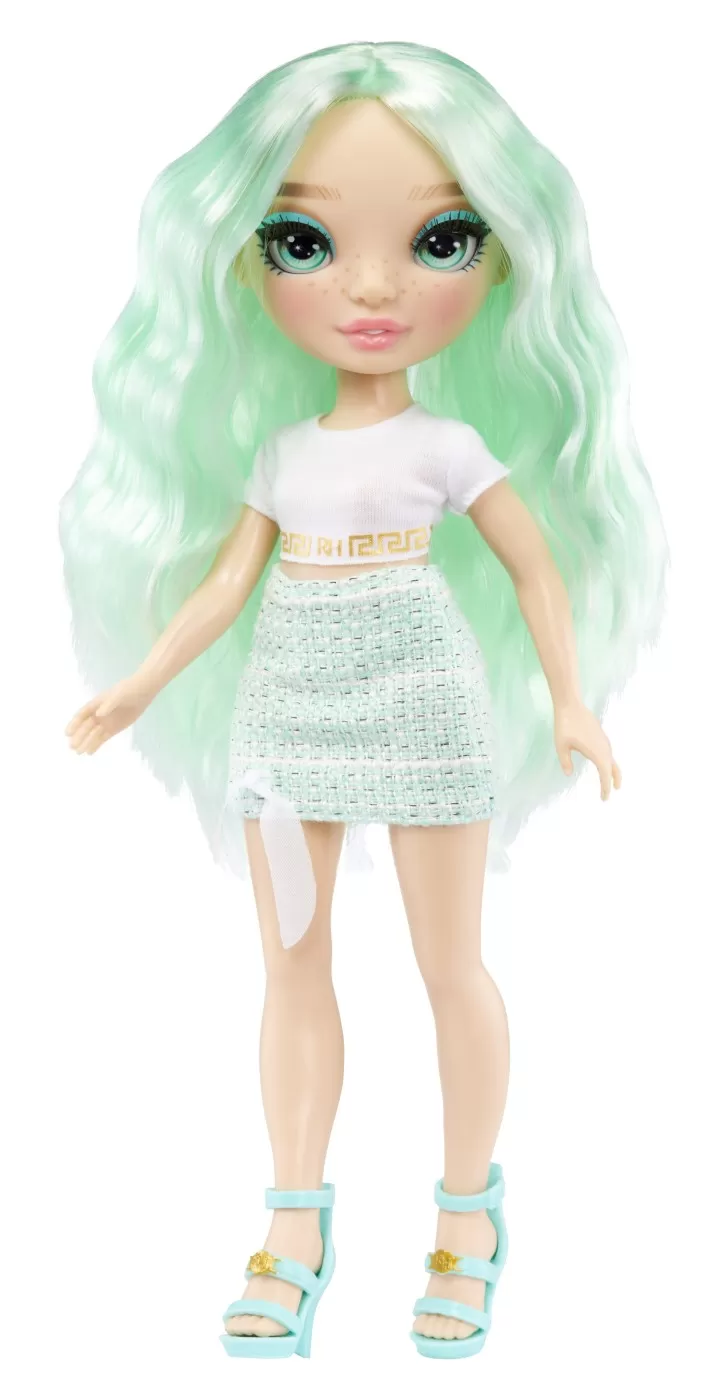 Rainbow High inspira copiii sa fie creativi. Curcubeul straluceste puternic, la fel si noile papusi Rainbow High! Descopera si tu papusile din gama Rainbow High OPP Fashion Doll! Daphe Minton are trasaturi detaliate superbe la moda, par lung si bogat si o tinuta care ii exprima perfect personalitatea! Unica si speciala ca fiecare papusa Rainbow High, ea isi exprima propria personalitate si stil, inspirand fetele sa fie cine isi doresc. Iubeste culoarea verde menta! Tinuta ei include top alb cu detalii, fusta verde si sandale verzi cu toc care se potrivesc perfect cu machiajul ei splendid Papusa Daphne Minton are un aspect unic, iar parul verde ii completeaza perfect tinuta. Include o papusa de moda superba cu tinuta completa. Colectioneaza-le pe toate si vei avea culorile curcubeului! Sunt 5 papusi pe care le poti adauga in colectia ta Emi Vanda, Daria Roselyn, Gabriella Icely, Daphne Minton si Georgia Bloom. Joaca cu papusile Rainbow High contribuie la dezvoltarea imaginatiei copiilor Cadoul perfect pentru copiii cu varsta de peste 6 ani!
