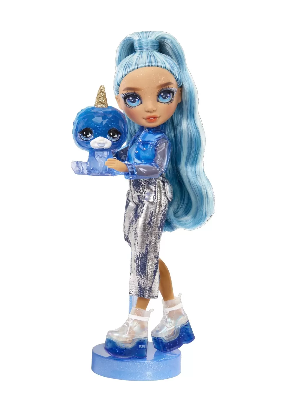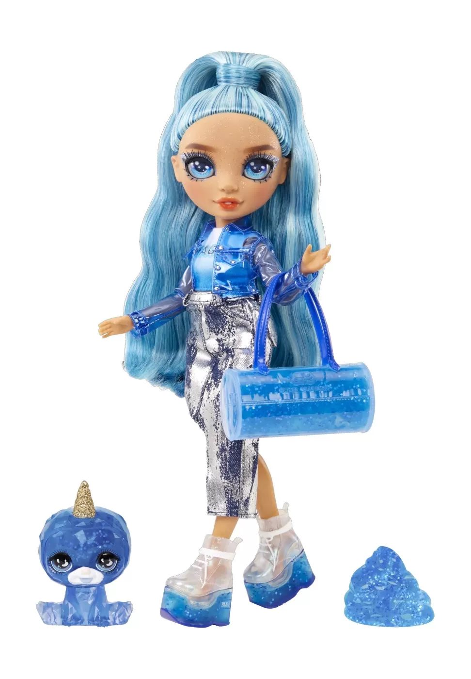 Rainbow High inspira copiii sa fie creativi. Curcubeul straluceste puternic, la fel si noile papusi Classic Rainbow! Descopera si joaca-te cu Skyler Bradshaw intr-un nou mod fantastic! Acum, cu Liquid Rainbow Slime exista mai multa culoare, mai multa stralucire, mai multe modalitati de joaca! Si, pentru prima data, papusa ta preferata vine cu propriul animal de companie, care, de asemenea, straluceste!Skyler Bradshaw este articulata pentru scenarii de joaca nelimitate si pline de farmec!Vine cu o tinuta completa inclusa si accesorii. Skyler este imbracata din cap pana in picioare in albastru!Pentru prima data, Skyler are adorabilul ei animal de companie magic cu corn – Bluebell. Pentru a schimba culoarea animalutului, ii poti umple corpul cu slime.Skyler Bradshaw vine cu pantofi draguti si o geanta pe care le poti personaliza si carora le poti schimba culoarea adaugand niste slime.Are trasaturi superbe si detaliate si par frumos!Include o papusa cu tinuta completa, pantofi, geanta, animal de companie, slime si sclipici.Colectioneaza toate papusile Rainbow High din gama Classic Rainbow si vei avea toate culorile curcubeului! Fiecare papusa are propriul stil care ii exprima perfect personalitatea. De asemenea, fiecare papusa vine cu culoarea de slime asortata rosu, portocaliu, galben, verde, albastru, violet sau roz. Exista o multime de moduri de a-ti imagina o joaca distractiva si creativa cu aceste papusi! Imbraca-le in fiecare look, iar daca ai doua sau mai multe papusi din gama Classic Rainbow le poti schimba si asorta piesele vestimentare intre ele!