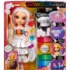 Rainbow High Watercolor & Create face extrem de usor sa-ti creezi propria papusa personalizata Rainbow High in multe moduri diferite, inclusiv cu Tie-Dye! Poti folosi acuarelele lavabile si pe propriul par! Apoi, doar clateste si repeta pentru a crea din nou.Adauga apa in cele 6 pulberi colorate pentru a crea acuarele, apoi coloreaza hainele si parul. Include 6 culori (roz, portocaliu, galben, verde, albastru si violet) pentru a face atat de multe desene colorate. Este atat de simplu!Pentru desene precise, aplica acuarelele folosind buretele cu doua capete direct pe haine si par. Atatea moduri de a te distra!Include elastice pentru a crea modele amuzante de tie-dye – spirale, straturi si multe altele.Sabloanele fac usor sa creezi forme amuzante pe par si haine.In plus, fata de papusa imbracata intr-o tinuta alba (bluza alba, fusta alba si pantofi albi), primesti si un tricou si pantofi bonus.Este atat de usor sa repeti procesul. Pur si simplu spala cu apa si sapun, lasa sa se usuce si incepe din nou sa creezi!Coloreaza-ti si tu parul! Doar aplica pe suvite pentru a adauga culoare parului tau. Nota culoarea va fi mai vibranta pe parul mai deschis!Papusa Watercolor & Create are par lung cu bucle si o codita impletita, gene lungi si ochi din sticla. Colectioneaza intreaga gama de papusi Watercolor & Create.Este inclusa 1 papusa exclusiva cu o tinuta complet alba si incaltaminte pentru papusa plus tricou si pantofi bonus, 6 acuarele lavabile colorate, burete cu doua capete, elastice, sablon, pahar de masurare, bol de unica folosinta, lingura si pieptene.Fiind complet articulata, este super distractiva si usor de personalizat. Capul, bratele, mainile si picioarele se indoaie pentru multe pozitii amuzante, inclusiv spagatul! Sau o poti expune pe suportul inclus pentru papusa.