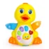 Ratusca dansatoare interactiva de la Hola Toys este gata de joaca! Apasa butonul de pe capul ei si ratusca incepe sa se miste, sa cante, sa de din aripi si i se aprind luminite. Muzica si culorile vii sunt atractive pentru cei mici care nu se vor plictisi usor de aceasta jucarie. Ratusca are cinci butoane care activeaza diverse actiuni ale jucarei. Acestea pot declansa sunete de ratusca, diverse melodii sau un sunet care imita bataile inimii. Pachetul contine si un boboc care imita sunete de ratusaca si lumineaza aripile mamei atunci cand stau alaturi.Sunetul poate fi ajustat pe mut daca vreti ca cel mic sa se joace in liniste. Atunci cand canta, ratusca stie sa clipeasca iar cand scoate sunete ciocul se inchide si se deschide. Toate aceste optiuni fac ca jucaria sa fie extrem de realista si interectiva. Ratusa stie sa cante 7 melodii.