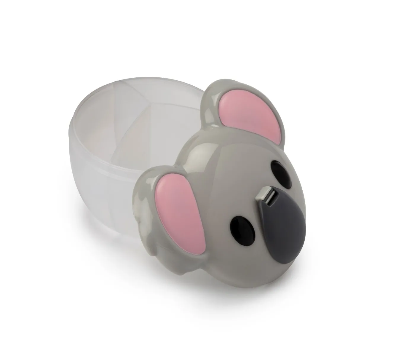 Dispenser formula de lapte, Melii, model Koala Descopera dispenserul nostru de formula Koala, perfect pentru a transporta si stoca formula si pudra de cereale intr-un stil adorabil si practic! Dotat cu 3 compartimente, acest dispenser iti ofera suficient spatiu pentru a pregati trei sticle de 260 ml, asigurand o stocare pre-portionata a formulei pentru bebelusi intr-un mod practic si eficient. Designul inteligent al capacului curbat si al gurii de turnare faciliteaza transferul pudrei de formula in sticla, fara sa faci mizerie sau sa pierzi timp pretios. Corpul transparent al dispenserului Melii, model Koala iti permite sa evaluezi usor cat de plin este containerul, oferindu-ti controlul necesar in pregatirea hranei pentru bebelusi. Usor de transportat si perfect adaptabil la orice situatie, acest dispenser este ideal pentru calatorii, la gradinita sau pentru orice deplasare in afara casei. Alege dispenserul nostru de formula Melii model Koala si transforma momentele de hranire ale bebelusului intr-o experienta placuta si lipsita de stres, atat pentru tine, cat si pentru micutul tau! CARACTERISTICI PRODUS DURABIL – Perfect pentru acasa sau in deplasare, recipientele noastre sunt durabile si usoare. ANTI-SCURGERE Recipientul are un capac antiscurgere care sigileaza perfect si ajuta la prevenirea dezastrului! UsOR DE CURatAT – Poate fi curatat in masina de spalat vase pe raftul superior. FaRa BPA, fara plumb, fara cadmiu si fara PVC.