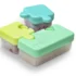 Recipient hrana bebe model puzzle, Melii, albastru&verde Recipientul nostru de depozitare a hranei cu 3 compartimente face hranirea distractiva! Cele trei compartimente ale cutiei PUZZLE albastru&verde se incastraza una in cealalta formand o jucarie puzzle distractiva si colorata. Acest recipient jucaus este perfect pentru copiii de toate varstele, care adora sa se joace si sa se fofileze in timpul gustarii si pranzului. Sigiliul din silicon alimentar de calitate face recipientul durabil, ermetic, antipicurare si, desigur, fara mizerii in timpul transportului. Acestea pot fi utilizate in cuptorul cu microunde si in congelator, dar mai ales sunt elegante si distractive! Se potrivesc perfect in rucsaci si genti de pranz si sunt excelente pentru utilizarea acasa, pentru gustari la scoala sau in timpul calatoriilor. CARACTERISTICI PRODUS Capacul ermetic si antipicurare pentru a opri mizeriile. Portii dimensionate perfect pentru copii Sigur pentru cuptorul cu microunde si congelator Usor de curatat si sigur in masina de spalat vase pe raftul superior Material Plastic, Fara BPA, plumb, PVC, cadmiu, ftalati Capacitate a celor 3 compartimente de 200 ml/ 6.7 fl oz, 200 ml/ 6.7 fl oz, 450 ml/ 15.2 fl oz
