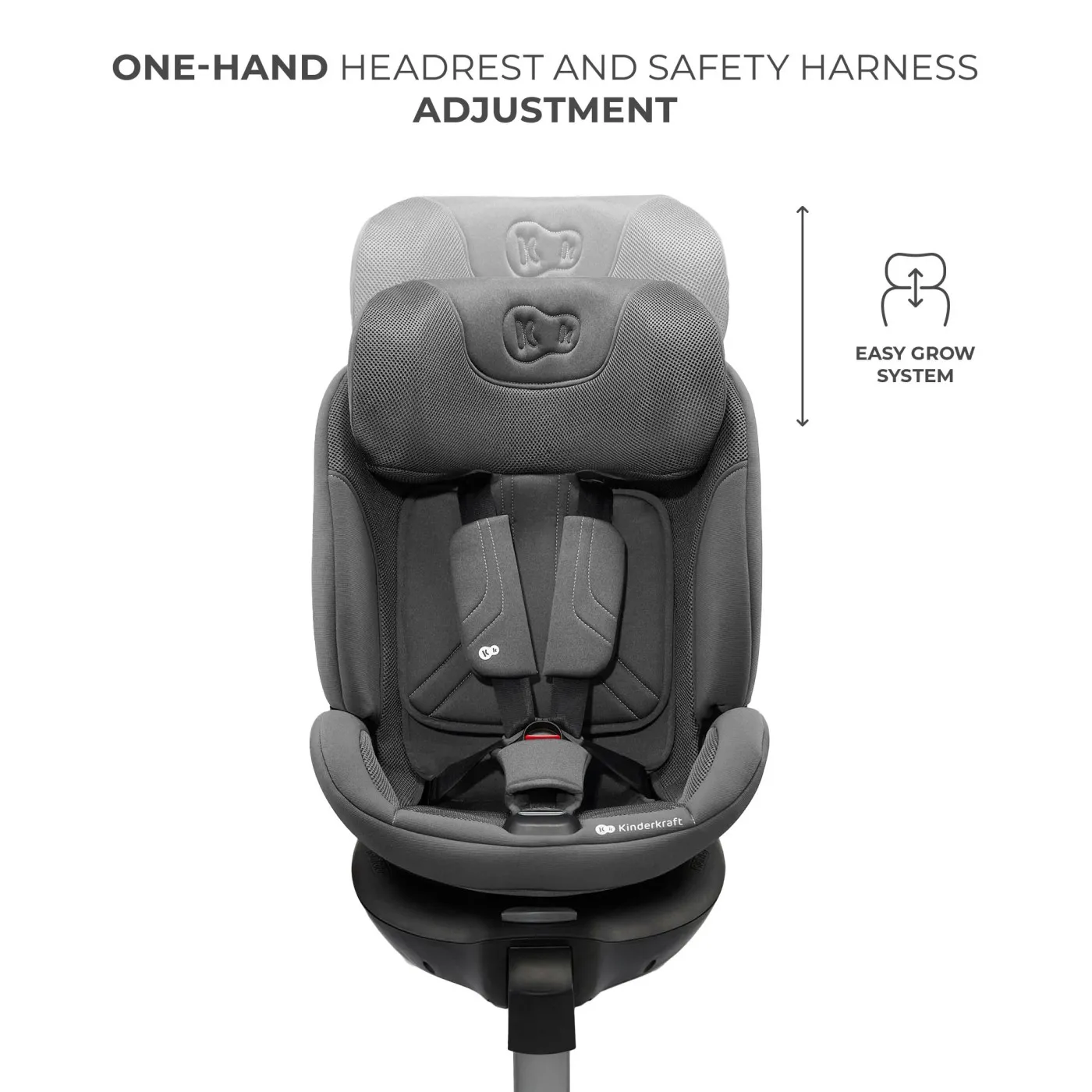 Scaun auto Kinderkraft XRIDER 2, i-Size 40-150cm, GREY scaun auto de inalta siguranta, care creste impreuna cu copilul tau Kinderkraft XRIDER 2 i-Size GREY este un scaun auto care creste impreuna cu copilul de la nastere si pana la aproximativ 12 ani. Sistemul avansat de protectie laterala SPS+ si tetiera H-GUARD+ cu spuma memory fac ca scaunul sa asigure protectie complexa copilului tau, permitand calatoria comoda si sigura cu spatele catre directia de mers pana la 21 kg si 105 cm inaltime. Scaunul ofera in total 8 pozitii de inclinare (4 RWF si 4 FWF) si functia de rotire 360°, care asigura o utilizare simpla si confortabila. Scoica si tetiera sunt realizate din spuma EPP rezistenta, utilizata in aviatie. De 5x mai sigur? Este posibil datorita orientarii cu spatele Scaunul auto Kinderkraft XRIDER 2 i-Size GREY ii asigura copilului tau cel mai inalt grad de siguranta in timpul fiecarei calatorii. Scaunul permite transportul copilului cu spatele catre directia de mers (RWF) pana la inaltimea de 105 cm si 21 kg, oferind siguranta maxima. Cel mic este astfel protejat de 5 ori mai bine decat in pozitia cu fata catre directia de mers (FWF). Este ca si cum un cocon invizibil il imbratiseaza pe copil, asigurandu-i protectia si confortul. În acest fel, parintii se pot bucura de fiecare clipa a calatoriei, stiind ca cel mic este perfect protejat. Rotire 360° utilizare usoara pentru parinte Sistemul de rotire 360° al scaunului auto Kinderkraft XRIDER 2 i-Size GREY face ca o singura miscare sa fie de ajuns pentru rotirea scaunului catre tine, lucru care face asezarea si scoaterea copilului mai usoare. Acum scaunul se adapteaza la nevoile tale, oferindu-ti maxim de confort si libertate de miscare. Aceasta solutie transforma calatoriile zilnice intr-o placere, salvand timp si nervi pentru parinti. Sistemul intuitiv de prindere face ca asigurarea copilului in scaun sa fie deosebit de simpla, astfel ca vei avea mai mult timp pentru alte placeri in timpul calatoriei. Tocmai de aceea scaunul confirma din plin motto-ul Kinderkraft &rdquoEASY WITH KIDS&rdquo. Confort in ambele directii 8 pozitii de inclinare pentru maxim de confort Sistemul RECLINING din scaunul Kinderkraft XRIDER 2 i-Size GREY asigura confortul maxim atat in pozitia cu spatele (RWF), cat si cu fata (FWF) catre directia de mers. În ambele versiuni sunt disponibile 4 pozitii de inclinare (8 in total), care permit reglarea scaunului la nevoile copilului – indiferent daca acesta doarme sau este complet captivat de descoperirea lumii. Indiferent de directia de mers, sistemul RECLINING are grija de confortul celui mic, oferind posibilitati diverse de reglare, care sporesc confortul si siguranta in timpul fiecarei calatorii. Îmbinarea dintre protectie de incredere si cel mai inalt confort Spuma EPP (Expanded Polypropylene) din scaunul auto Kinderkraft XRIDER 2 i-Size GREY este mai mult decat un material usor – este un element cheie care asigura o protectie deosebita. Datorita structurii sale elastice, spuma absoarbe eficient forta de impact, minimalizand impactul asupra copilului si creand o bariera elastica de protectie. Acest material utilizat in aviatie, nu doar ca rezista la sarcini repetate, dar isi pastreaza de asemenea proprietatile pentru vreme indelungata. Iese in evidenta prin rezistenta la deteriorare, astfel ca scaunul este sigur in orice situatie. În plus, faptul ca spuma EPP este hipoalergenica, asigura confortul de durata si sanatatea pielii delicate a copilului, prevenind iritatiile si alergiile. Aceasta inseamna garantia sigurantei pe care te poti baza pentru mult timp. Protectie dubla la fiecare drum sistemele H-GUARD+ si SPS+ Siguranta in scaunul Kinderkraft XRIDER 2 i-Size GREY este cu un pas inainte. Tetiera H-GUARD+ cu spuma memory foam reprezinta o solutie inovatoare, care asigura o dubla protectie. Pe de o parte se muleaza perfect la forma capului copilului, garantand un confort ridicat. Pe de alta, absoarbe eficient energia generata in timpul impactului, minimalizand astfel riscul de ranire. Indiferent daca esti in centrul orasului, pe autostrada sau pe serpentine de munte, H-GUARD+ protejeaza capul delicat si coloana cervicala a copilului tau. Mai mult, aceasta tehnologie asigura nu doar protectia, ci si un confort deosebit – spuma memory foam imbratiseaza capul, oferind confort chiar si in timpul calatoriilor lungi. Sistemul SPS+ cu un bumper suplimentar actioneaza ca un amortizator, care absoarbe forta impactului in cazul coliziunilor laterale si il protejeaza pe copilul tau de ranile grave. Rezistenta maxima material rezistent la uzura Scaunul auto Kinderkraft XRIDER 2 i-Size GREY este creat dintr-un material mai rezistent, care asigura protectia si rezistenta de durata la utilizarea zilnica. Materialul gros si imbunatatit este rezistent la uzura, lucru care garanteaza pastrarea aspectului si functionalitatii scaunului chiar si dupa ani de utilizare intensiva. ERGO PAD + confort si sprijin inca din primele zile de viata ERGO PAD + cu sistemul AIR FLOW este un panou reductor pentru copiii de pana la 75 cm, care asigura sprijinul anatomic corespunzator si confortul deplin. Înca din primele zile de viata, scaunul auto Kinderkraft XRIDER 2 i-Size GREY are grija de pozitia celui mic, adaptandu-se nevoilor lui in schimbare. Husa care permite circulatia aerului si este usor de indepartat, permite mentinerea rapida si simpla a curateniei scaunului. Avantajele suplimentare precum protectiile centurilor cu un strat antialunecare si locul de depozitare practic pentru hamul de siguranta in 5 puncte fac ca scaunul XRIDER 2 i-Size sa creasca impreuna cu copilul tau, asigurandu-i protectia si confortul in fiecare etapa de dezvoltare. EASY GROW reglarea scaunului dintr-o singura miscare Sistemul EASY GROW al scaunului Kinderkraft XRIDER 2 i-Size GREY permite reglarea usoara si rapida a tetierei si centurilor cu o simpla miscare. Cele 11 niveluri de reglare garanteaza potrivirea ideala a scaunului la copilul aflat in c