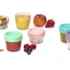 Set 12 recipient sticla pentru hrana bebe, Melii, 6*59 ml + 6*118 ml Cu setul de 12 recipiente din sticla pentru hrana poti transporta si depozita gustarile intr-un mod sanatos! Acest recipient de mancare, de dimensiuni potrivite pentru copii, face gustarile distractive si are, in acelasi timp, un capac ermetic si antipicurare pentru a preveni mizeriile. Recipientele de 59 ml si 118 ml pentru mancare pentru bebelusi de la Melii fac usor de portionat, depozitat si servit mancarea bebelusului, blocand prospetimea, prevenind inghetarea in congelator si evitand varsarea in geanta pentru scutece sau cutia de pranz. Inelele din silicon inchid perfect capacele. Marcajele durabile de masurare, meticulos gravate pe sticla, raman lizibile in timp, permitandu-va sa portionati cu usurinta cantitatea de care aveti nevoie. CARACTERISTICI PRODUS Fabricat din sticla, un material natural, prietenos cu mediul si reciclabil Capace ermetice si antipicurare 100% sigur pentru alimente, neporos si fara substante chimice nocive (fara BPA, plumb, cadmiu, PVC, ftalati) Potrivit pentru congelator, cuptor cu microunde si masina de spalat vase
