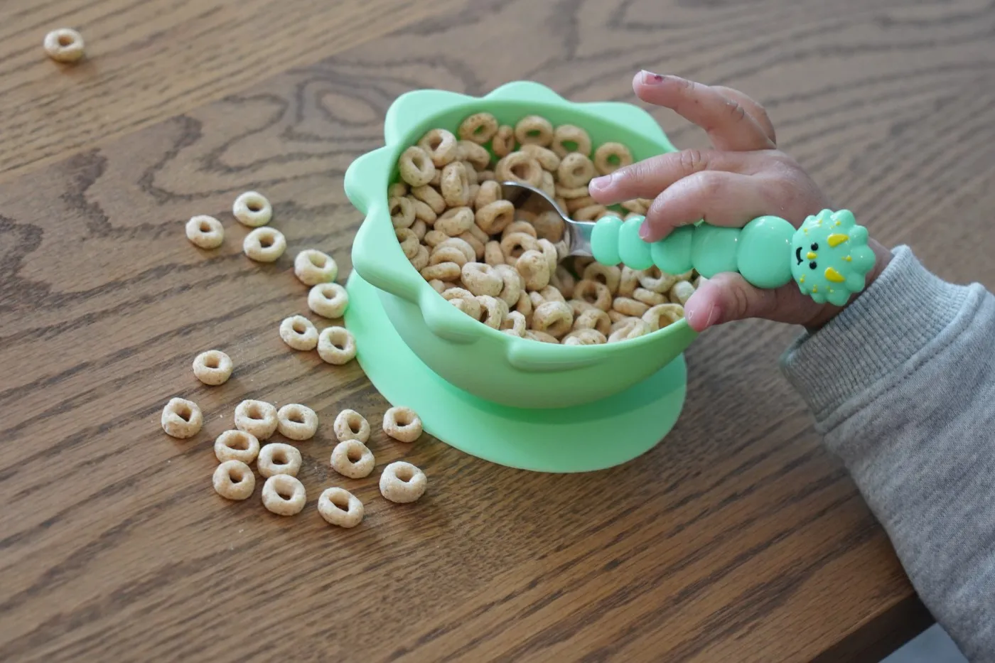 Set 2 boluri silicon cu ventuza, Melii, model dinozaur Sa fim sinceri, hranirea copiilor nu este o sarcina usoara – este dezordonata! Bolurile noastre cu ventuza din 100% silicon sunt menite sa faca ora mesei mai putin stresanta si mai distractiva. Pur si simplu plaseaza-l pe o suprafata plata si lasa ventuza sa faca magia. Nu mai trebuie sa-ti faci griji ca bolurile vor zbura si ajung rasturnate pe podea! Varietatea de designuri cu animale incurajeaza alimentatia independenta, creand o asociere pozitiva cu ora mesei. Aceasta caracteristica este ideala pentru bebelusi si copii mici, pe masura ce invata sa se hraneasca singuri. Compatibil cu toate tipurile de scaune inalte. Fa din ora mesei o activitate distractiva cu copilul tau! Mai putin stres si FaRa MIZERIE! Colectioneaza toate cele 5 modele dragute de animale. CARACTERISTICI PRODUS Design vesel si prietenos 100% realizate din silicon alimentar, ventuza mare care mentine bolul fixat, capacitate 300ml, include 2 boluri la pachet. Sigure pentru utilizare in cuptorul cu microunde sau congelator sii cel mai important, animalele fac hranirea distractiva! Se pot cuibari si stivui cu usurinta in dulapurile din bucatarie pentru o depozitare compacta. Ajuta la alimentatia independenta Bolurile Melii cu ventuza model dinozaur sunt 100% din silicon si vor incuraja alimentatia independenta si dezvoltarea abilitatilor motorii fine. Diferitele designuri cu animale ofera o asociere pozitiva cu ora mesei. Bolul ramane pe loc, indiferent cat de tare incearca mancaciosul tau sa il arunce pe podea. Excelent pentru bebelusi si prescolarii care invata sa se hraneasca singuri. Se potriveste cu toate scaunele inalte. Non-toxice Produsele Melii sunt de inalta calitate si nu contin substante chimice nocive fara BPA, fara plumb, fara cadmiu, fara PVC si sunt fabricate din 100% silicon alimentar. Sunt fabricate din silicon moale si durabil, fara margini ascutite. Sunt rezistente si flexibile. Utilizare in masina de spalat vase Curatati temeinic cu detergent si apa calda sau pe raftul superior al masinii de spalat vase inainte de prima utilizare si dupa cum este necesar. Inspectati produsul inainte de fiecare utilizare si aruncati-l la primul semn de deteriorare sau slabiciune.