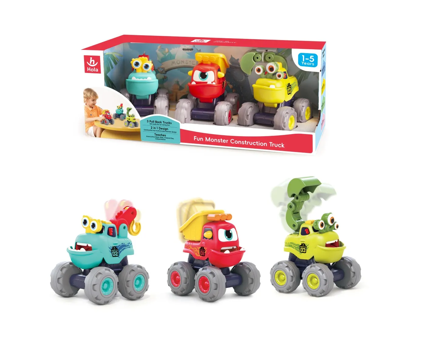 SET 3 MASINUTE DE CONSTRUCTIE MONSTRULETII AMUZANTI CU FRICTIUNE