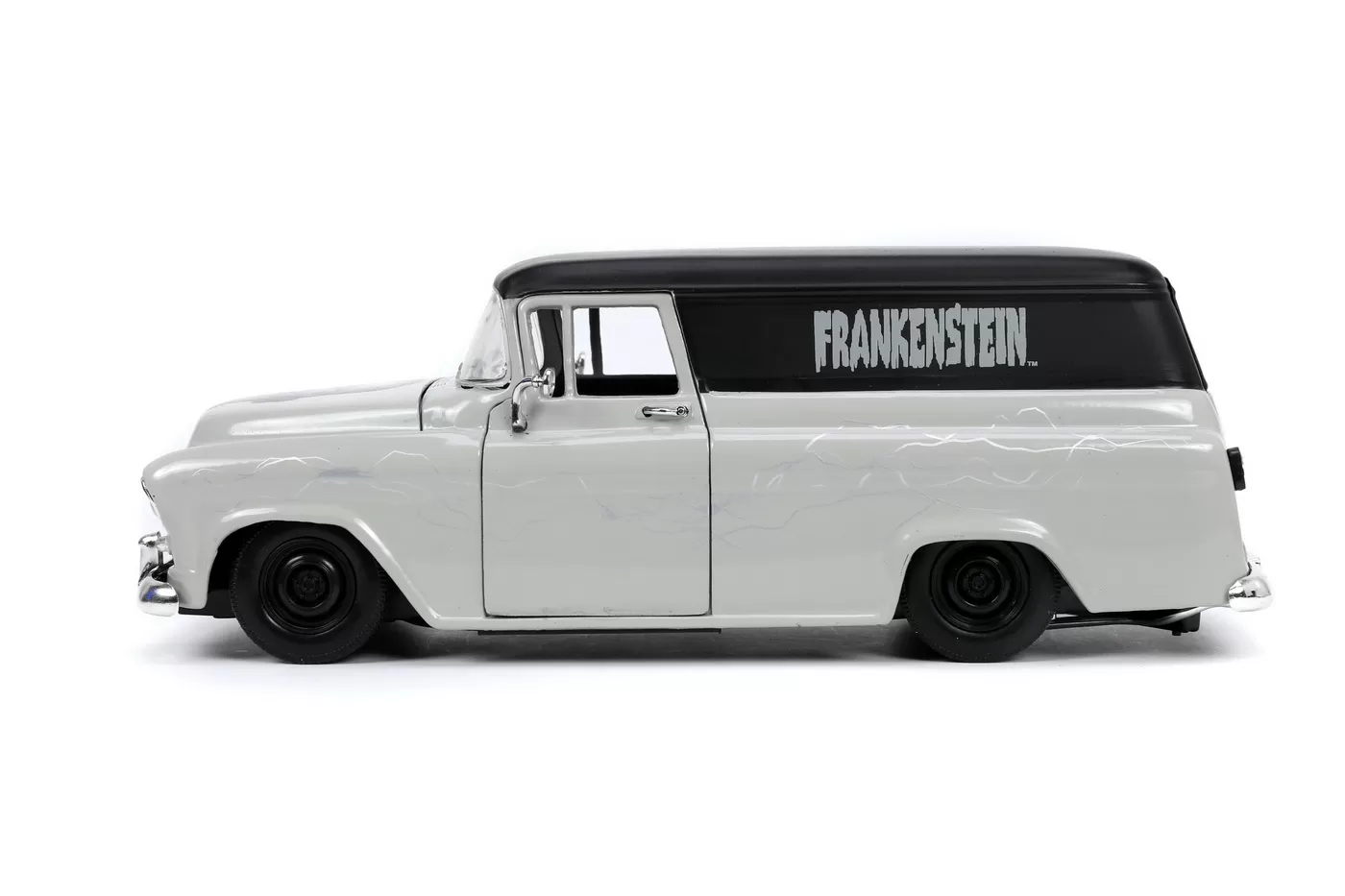 Masinuta din metal Chevy Suburban, cu usi, capota si portbagaj ce se pot deschide, include si figurina din metal Frankenstein. Nicio colectie nu este suficient de infricosatoare daca Frankenstein nu face parte din ea! Acest combo distractiv prezinta un vehicul Chevy Suburban turnat sub presiune 1957 la scara 124 impreuna cu Frankenstein inspirat de tema, include o figura de colectie Frankenstein turnata sub presiune care masoara aproximativ 7 cm inaltime si, de asemenea, vine cu o replica a cardului de lobby pentru readuce acea senzatie nostalgica. Va iesi in evidenta in orice colectie si va crea o piesa de conversatie buna!