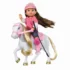 Evi este o papusa foarte dragalasa, care e intotdeauna la moda si careia ii place la nebunie culoarea roz. Evi Love cu calut arata superb in costumul ei fantastic de echitatie si este destul de clar ca ii place foarte mult sa calareasca. Fiind un calaret pasionat, ii place sa se urce in saua calutului si sa porneasca in noi aventuri.