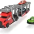 Transportarea masinilor nu cunoaste granite cu noile camioane ale lui Dickie. Pe remorca este loc pentru multe masinute, asa ca nu nimeni nu ramane pe marginea drumului. Remorcile functioneaza realist, permitand masinilor sa se urce si sa coboare din camion. Setul contine 3 masinute. Dimensiunea 28 cm. Acest set contine varianta de trailer rosie.