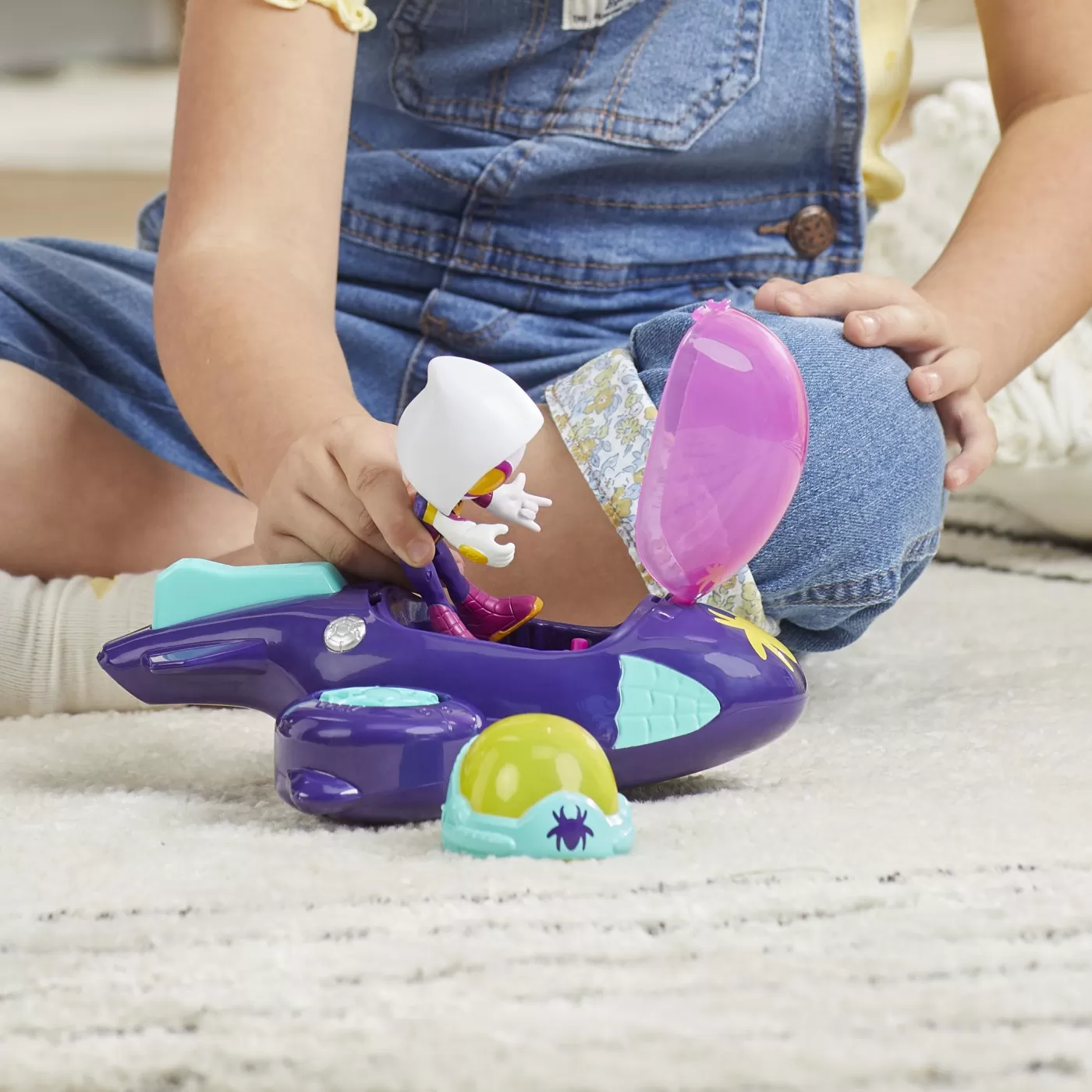 Iesiti pe strazi si alergati pentru a salva lumea &mdash cu stil! &mdash cu Team Spidey si aceste masini de jucarie Web-Spinners pentru copii! Vehiculul caracteristic vine cu o figurina de 10cm. Cautati toate figurinele, vehiculele si seturile de joaca preferate ale Marvel Spidey si ai lui Amazing Friends pentru a va imagina si mai multe aventuri webtastice. Acest pachet contine personajul Ghost Spider.