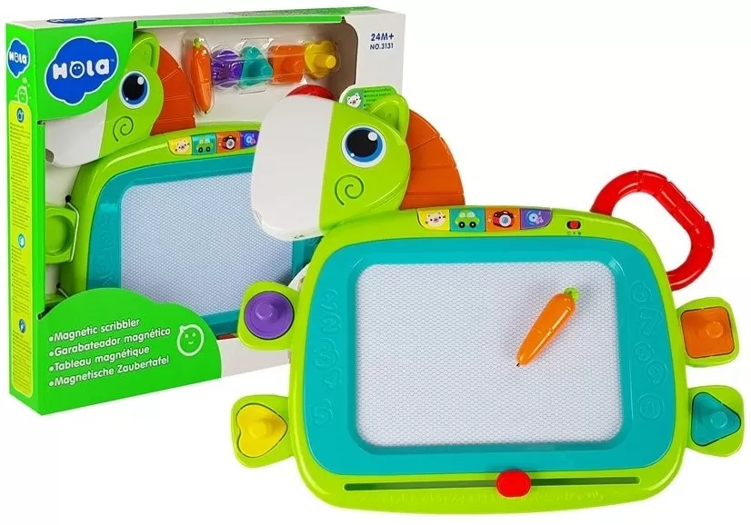 Tablita magnetica este indragita de catre toti copiii pasionati de scris si desen. Tablita include stilou si patru stampile. Tablita emite lumini si sunete vesele, datorita butoanelor aflate in partea superioara. Pentru a facilita transportul, tablita are si un maner.