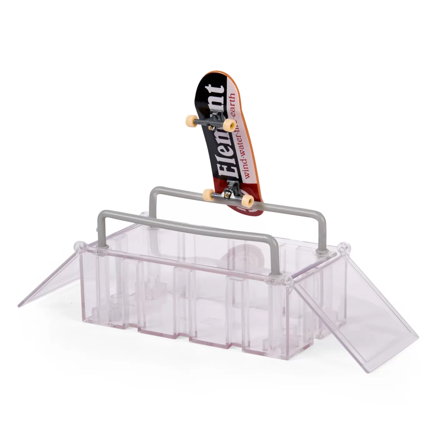 Ridica-te in aer cu Tech Deck, fingerboard-uri reale cu grafica autentica de la companiile de skateboard-uri adevarate! Cutia Play and Display este ideala pentru a depozita colectia ta de mini skateboard-uri Tech Deck. Cand esti gata sa te dai, cutia-vitrina se transforma intr-o cutie de distractie si rampa unde tu poti sa inveti trucuri noi si sa le perfectionezi pe cele vechi. Depoziteaza pana la 24 de fingerboards (fiecare este vanduta separat) si ia-le cu tine pentru a te distra oriunde. Placile din interior raman intacte si poti plia cutia pentru a o transforma intr-o rampa cu funbox si sine pentru a sari si sa face grind-uri! Da-te pe rampa cu placa exclusiva inclusa in set, Element Skateboards pro fingerboard, si adaug-o la colectia ta de mini skateboard-uri. Mini skateboard-urile Tech Deck pentru degete si seturile de rampe sunt cadoul perfect pentru fetele de 6-8 ani, care iubesc jucariile mici si jucariile cool sau ca alternativa la masinile de jucarie pentru baietii de 6-8 ani. Daca iti doresti o grafica de placa reala de la companiile de skateboard-uri reale, atunci trebuie sa fie Tech Deck – incepe usor, devino un profesionist si colectioneaza-le pe toate.