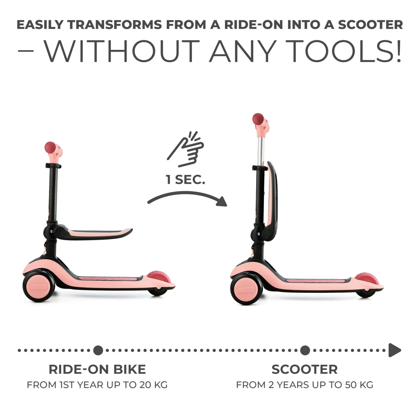 HALLEY Kinderkraft Bicicleta de echilibru &amp trotineta 2-in-1 HALLEY este combinatia perfecta intre bicicleta de echilibru si trotineta cu trei roti, oferind copilului doua modalitati de joaca intr-un singur produs! Cu un design modern, ghidon reglabil si roti luminoase, HALLEY este ideala pentru plimbari distractive si sigure. Avantaje principale &bull Transformare rapida treci usor de la bicicleta la trotineta prin ridicarea seii. &bull Ghidon reglabil 3 niveluri de inaltime (61,5 – 75,5 cm) pentru o adaptare perfecta. &bull Roti luminoase din PU pentru un efect spectaculos si o vizibilitate mai buna. &bull Ultra usoara si manevrabila cantareste doar 3 kg. &bull Sigura si testata conform standardelor europene EN 71, certificata Intertek. Specificatii tehnice &bull Dimensiuni 60 x 29 x 61,5-75,5 cm &bull Greutate 3 kg &bull Pentru copii Bicicleta de la 1 an (max. 20 kg) Trotineta de la 2 ani (max. 50 kg) HALLEY mai multa distractie, mai multa mobilitate, mai multa libertate!