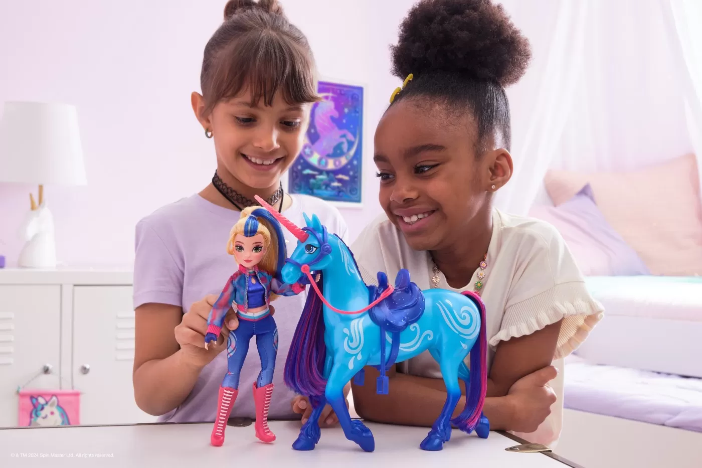 Completeaza-ti colectia de papusi Academia Unicorn cu unicornul Avei ,Leaf (Frunzis). Inspirata din serialul animat NETFLIX si din seria de carti de succes unde prietenia tine fraiele, aceasta jucarie unicorn de 27,9 cm da viata blandului si iubitorului Leaf (Frunzis). Minunat de detaliat, Leaf (Frunzis) are marcaje perlate Magia plantelor pe partea laterala, un corn maiestuos si stralucitor, coama si coada colorate si accesorii detasabile pentru papusa, precum fraul si saua, pentru un plus de joaca. Misca-i usor capul lui Leaf (Frunzis) pentru a-i scoate in evidenta personalitatea si retraieste experienta magica a legaturii dintre unicorn si calaret cu Ava. Periaza coama si coada moale ale lui Leaf (Frunzis) cu instrumentul de coafat al Avei (nu este inclus, se vinde separat cu papusa) si calareste spre aventura pentru a proteja Insula Unicornului si magia sa. Pentru mai multe moduri de a experimenta Academia Unicorn alaturi de personajele tale preferate, cauta papusile Sophia si Isabel si unicornii lor, Wildstar Lumina de Curcubeu si River (suvoi) (fiecare se vinde separat) si extinde-ti lumea. Legaturile magice dintre elevii Academiei Unicorn si unicornii lor vor starni povesti nesfarsite pline de imaginatie. Pentru copiii carora le plac unicornii si jucariile cu cai, papusile si accesoriile, jocurile de casa de papusi, jucariile de colectie, jucariile de plus si multe altele, jucariile Unicorn Academy sunt cadouri distractive de ziua de nastere pentru fete sau cadouri pentru orice ocazie.
