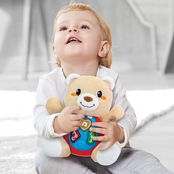 Descoperiti ursuletul interactiv si educativ perfect pentru bebelusii incepand cu varsta de 3 luni. Acest ursulet inovator este conceput pentru a stimula dezvoltarea cognitiva si senzoriala a celor mici, oferindu-le in acelasi timp ore intregi de distractie si invatare. Ursuletul este echipat cu trei butoane luminoase care capteaza imediat atentia copiilor. Aceste butoane nu doar stralucesc, ci si activeaza fraze cu rime si invatare simpla. Pe langa frazele cu rime, ursuletul include si o varietate de melodii distractive si vesele. Ursuletul este conceput pentru a fi usor de manevrat de catre cei mici. Butoanele luminoase sunt mari si usor de apasat, incurajand coordonarea mana-ochi si dezvoltarea abilitatilor motorii fine. Cand copiii apasa pe butoane, sunt recompensati cu lumini, sunete si fraze, incurajand explorarea si invatarea prin joc. In plus, ursuletul este durabil si rezistent, fiind construit pentru a face fata entuziasmului si energiei copiilor mici. Culorile vii si designul atractiv sunt menite sa atraga atentia si sa mentina interesul celor mici pentru perioade lungi de timp. Recomandat pentru copiii cu varsta de cel putin 3 luni, acest ursulet interactiv este un instrument excelent pentru a sustine dezvoltarea timpurie a copiilor, combinand invatarea cu distractia intr-un mod placut si captivant.