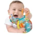 Mingea cu activitati multiple este un companion distractiv si educativ pentru micutul tau, oferind o varietate de stimulente senzoriale si de divertisment. Fiecare coltisor al mingii este atent proiectat pentru a asigura ore intregi de distractie creativa si joc interactiv. Cu tesaturi texturate diferite, mingea ofera o varietate de senzatii tactile, ajutand la dezvoltarea abilitatilor motorii fine ale copilului. De la tesaturi moi si placute la atingere pana la cele cu texturi mai aspre, fiecare aspect al mingii incurajeaza explorarea si descoperirea. In interior, un clopotel adauga un element auditiv placut, raspunzand la miscarile copilului. Modelul variat al tesaturilor si culorilor vii completeaza experienta senzoriala, stimuland curiozitatea si concentrarea micutului explorator. Mingea este echipata cu un inel de prindere care se conecteaza cu usurinta la carucior, patut sau scaun auto, astfel incat micutul tau sa se poata bucura de distractie si aventura oriunde mergeti. Recomandata pentru copiii cu varsta de minim 3 luni si peste, mingea cu activitati multiple este un instrument educativ valoros, care incurajeaza dezvoltarea cognitiva si senzoriala intr-un mod distractiv si captivant.